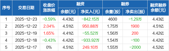 北化股份:融资净偿还842.15万元,融资余额4.43亿元(12-23)