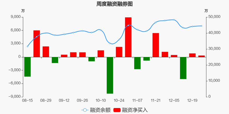 北化股份本周(2025/12/22-2025/12/26)累计涨幅达3.78%,截至12月26日最新股价报收17.29元。从增量上来看,12月22日至12月25日融资买入交易规模1.06亿元,融资偿还规模1.02亿元,期内融资净买入337.81万元。从存量上来看,截止12月28日,北化股份融资融券余额4.45亿元,其中融资余额规模4.45亿元,融券余额规模9.74万元。