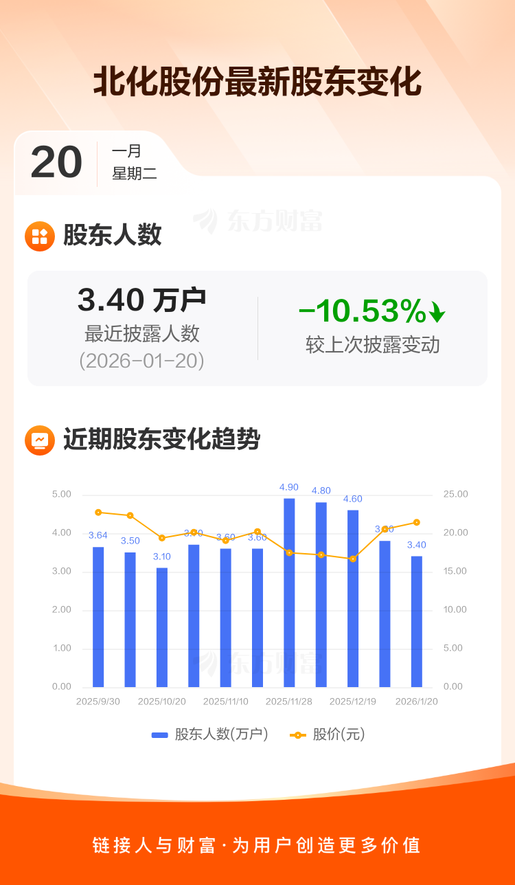 北化股份:截至1月20日最新股东户数3.40万户,较上期减少10.53%