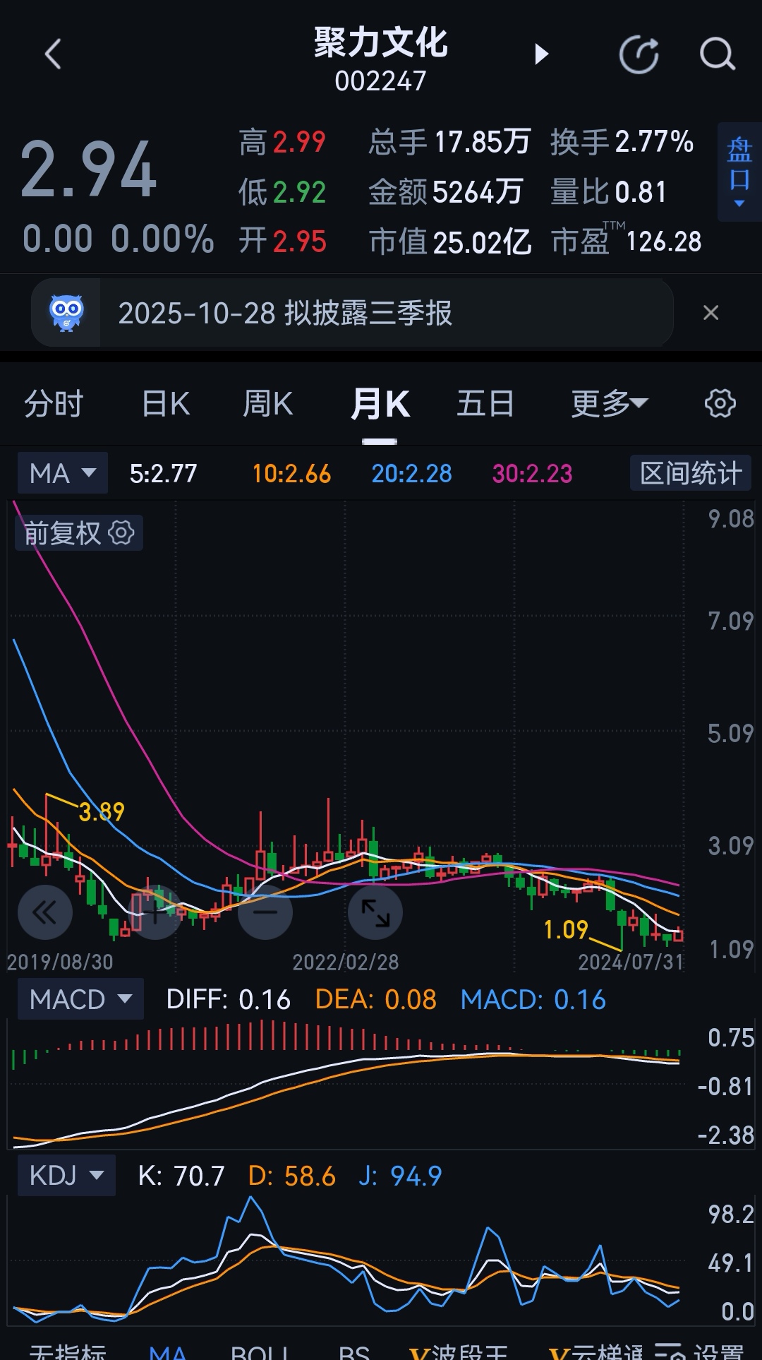 5.主力通过五年多疯狂打压盘整吸筹,1.5—3元之间彻底完成控盘任务
