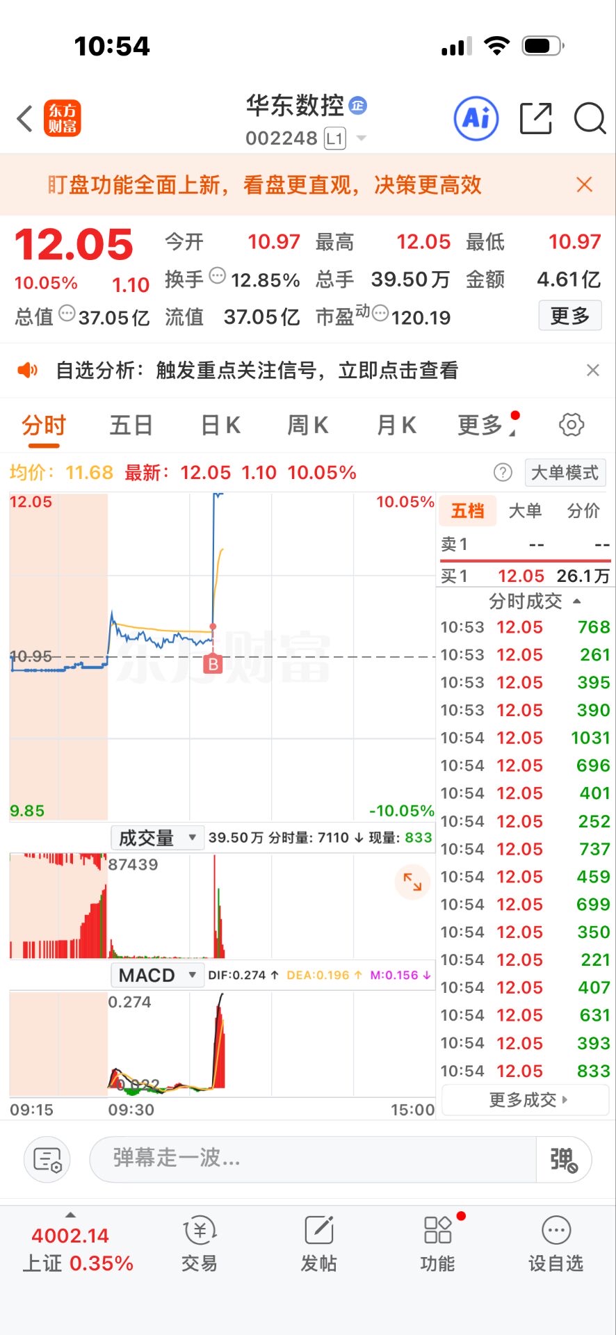 $华东数控(SZ002248)$ :拿下今日开门红 只可惜车速太快 老铁们没能上车 等财哥进去之后再发出来 且有延迟 财哥下次尽量手速快点 让老铁们也进去吃肉