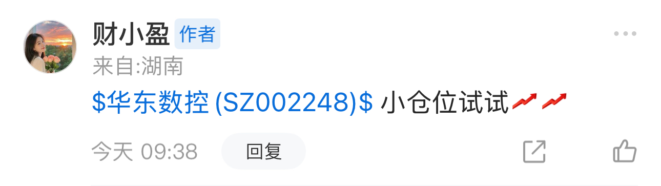 $华东数控(SZ002248)$  观察好几天了,一上就挨揍,怪自己犹豫了,没有把握准时机,但目前均线附近还是有支撑的,加油冲