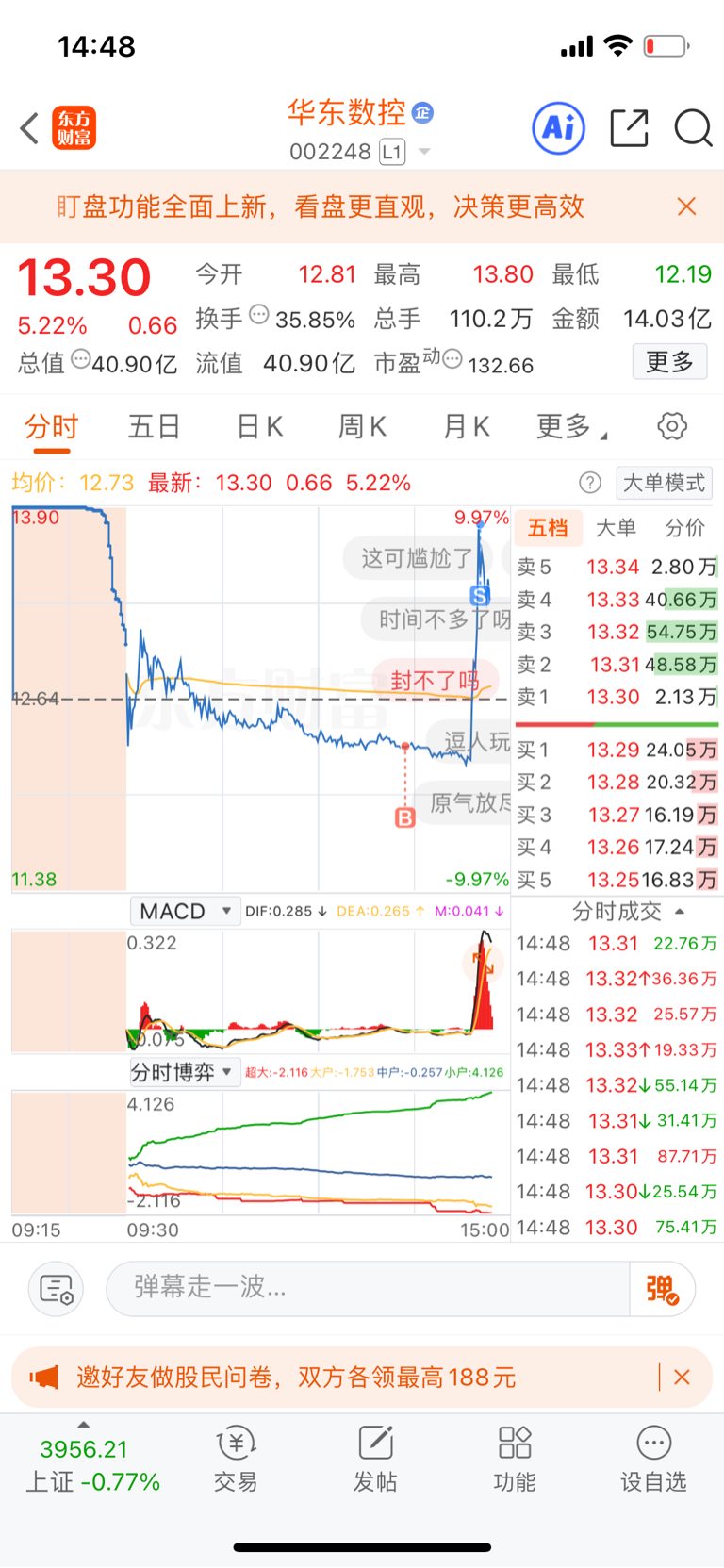 $华东数控(SZ002248)$ 转了1千多、谢谢大家