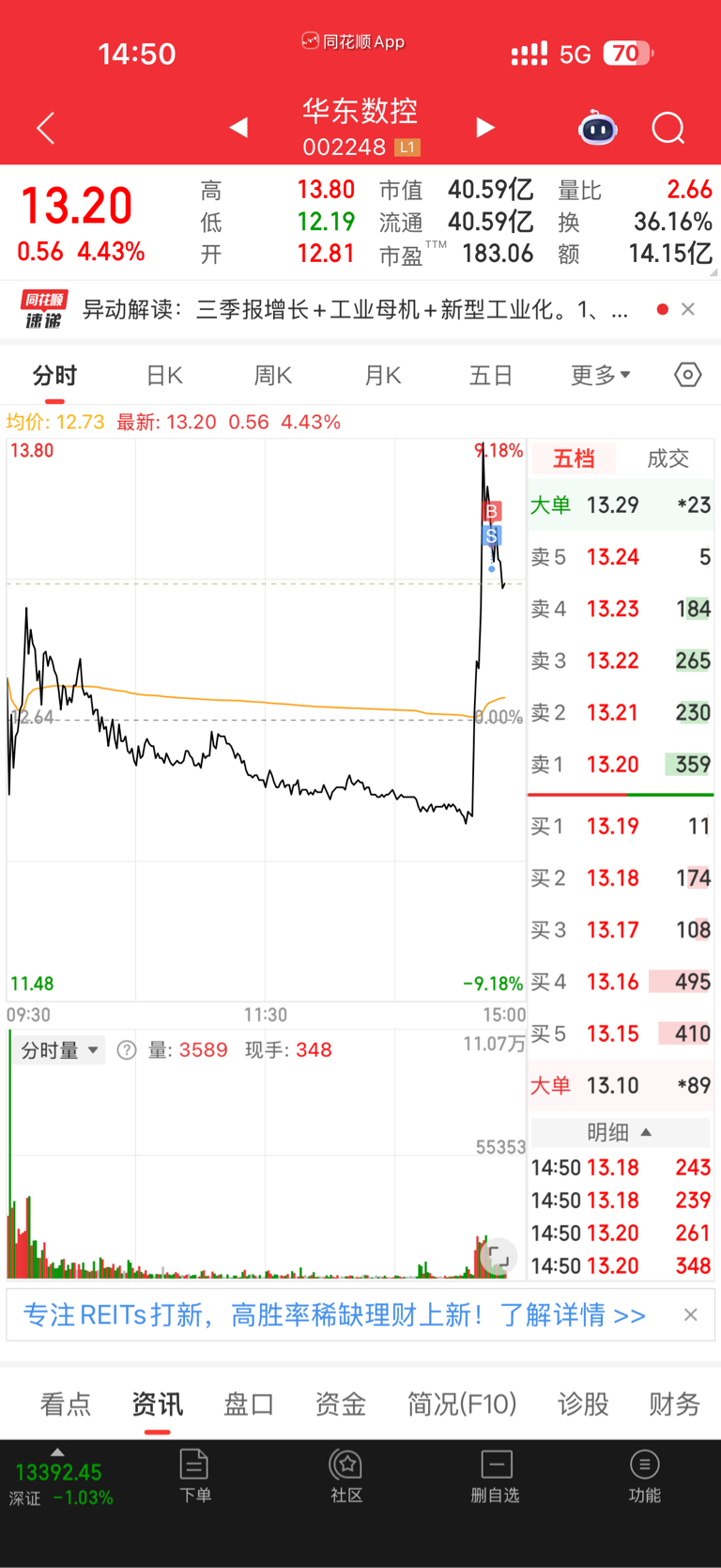 $华东数控(SZ002248)$ 本来都走了,点错了又整进去几百股 周一怕是吃面了