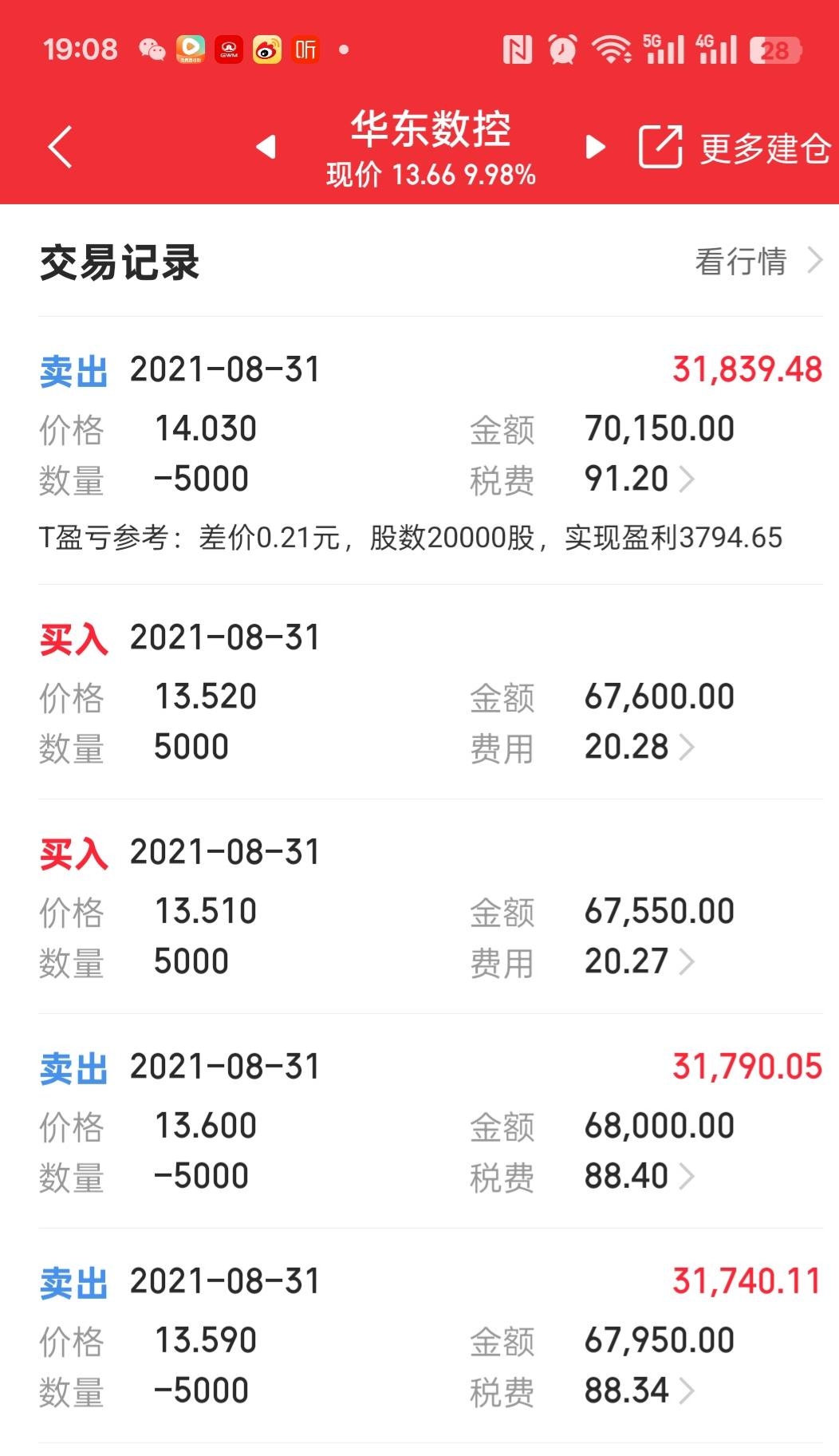 福州人民给老陈家发来贺电,祝贺华东数控突破2021年八月31号新高14.03