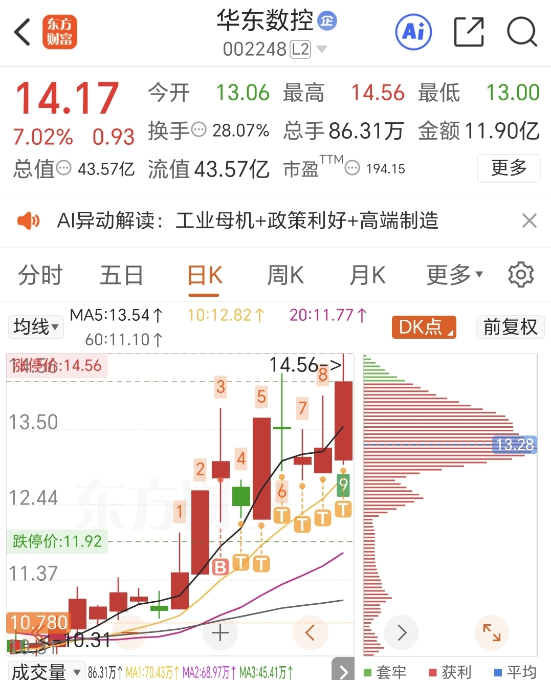 $华东数控(SZ002248)$ 12.8建仓,现在成本10.78。明天可能会低开,但是估计波动也会很大,继续降低成本吧。