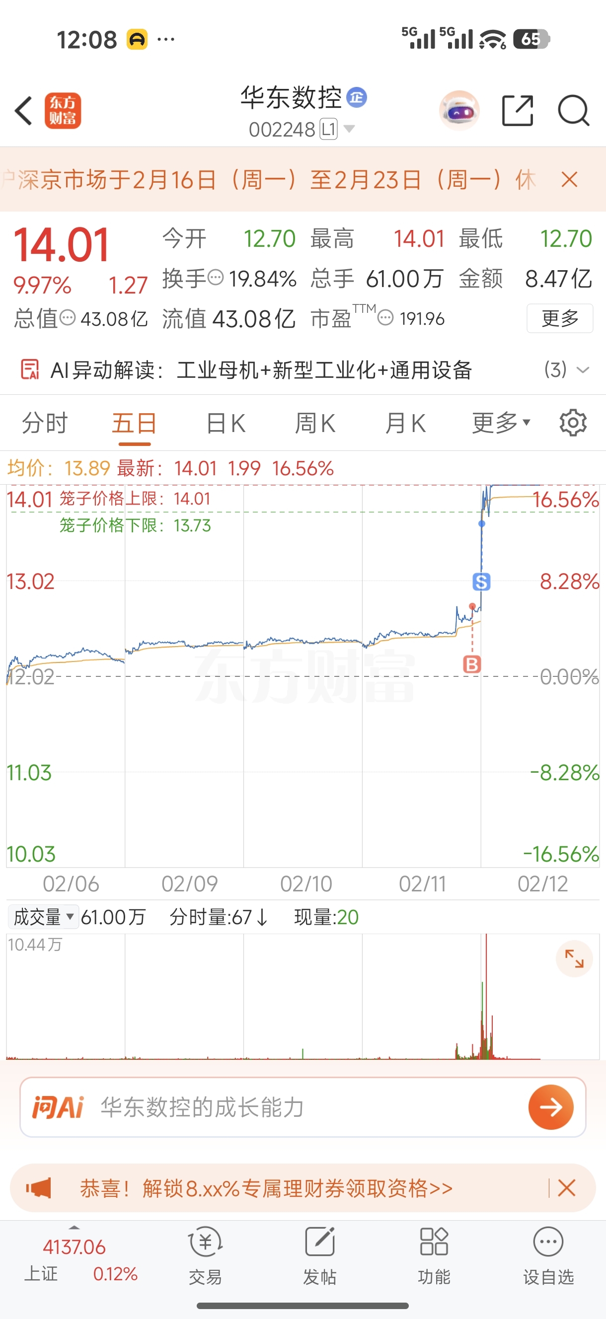 $华东数控(SZ002248)$ 没钱清仓过年了