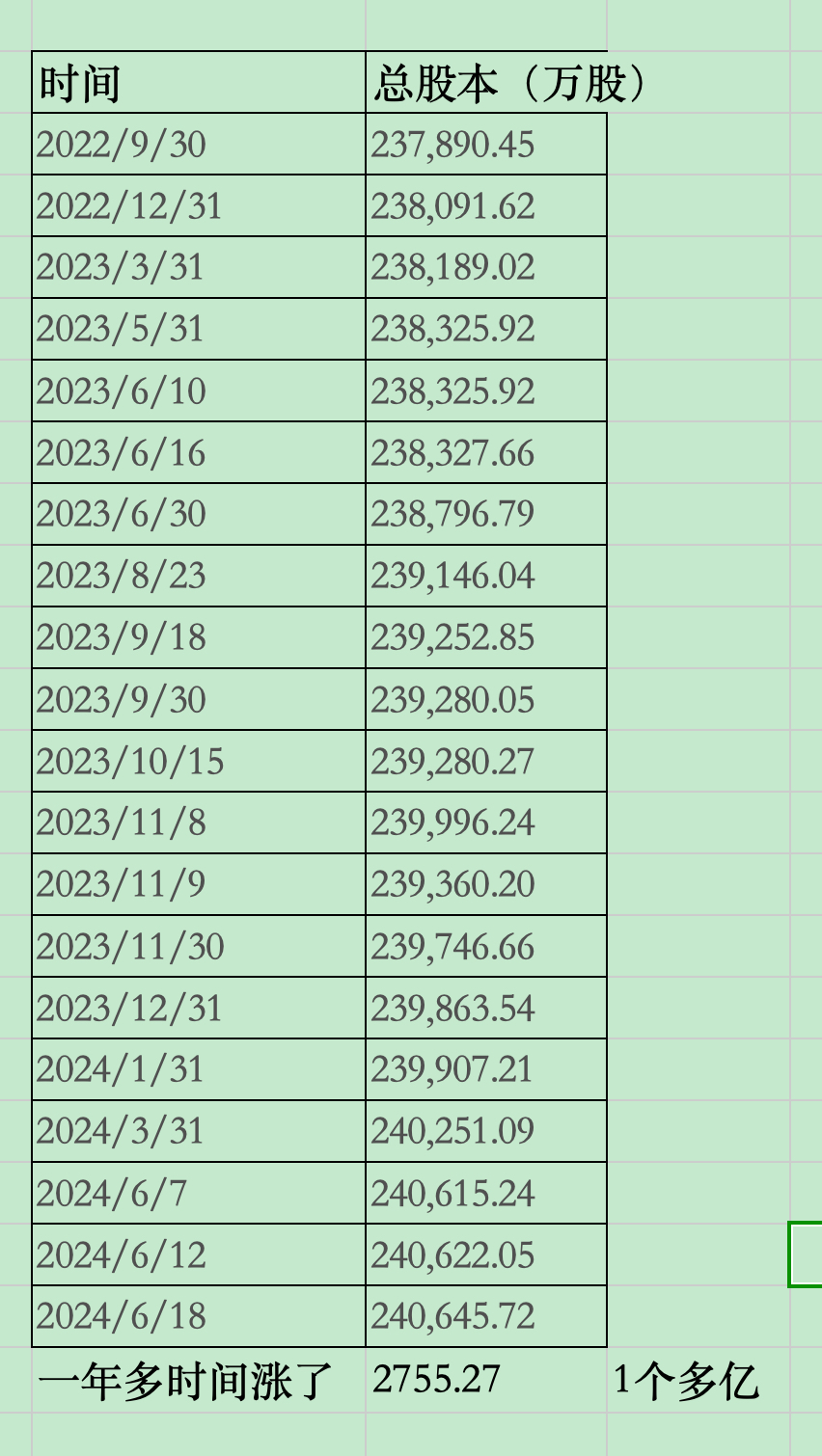 这图是24年6月做的,那时24.06亿股本。现在是25年1月,总股本25.33亿