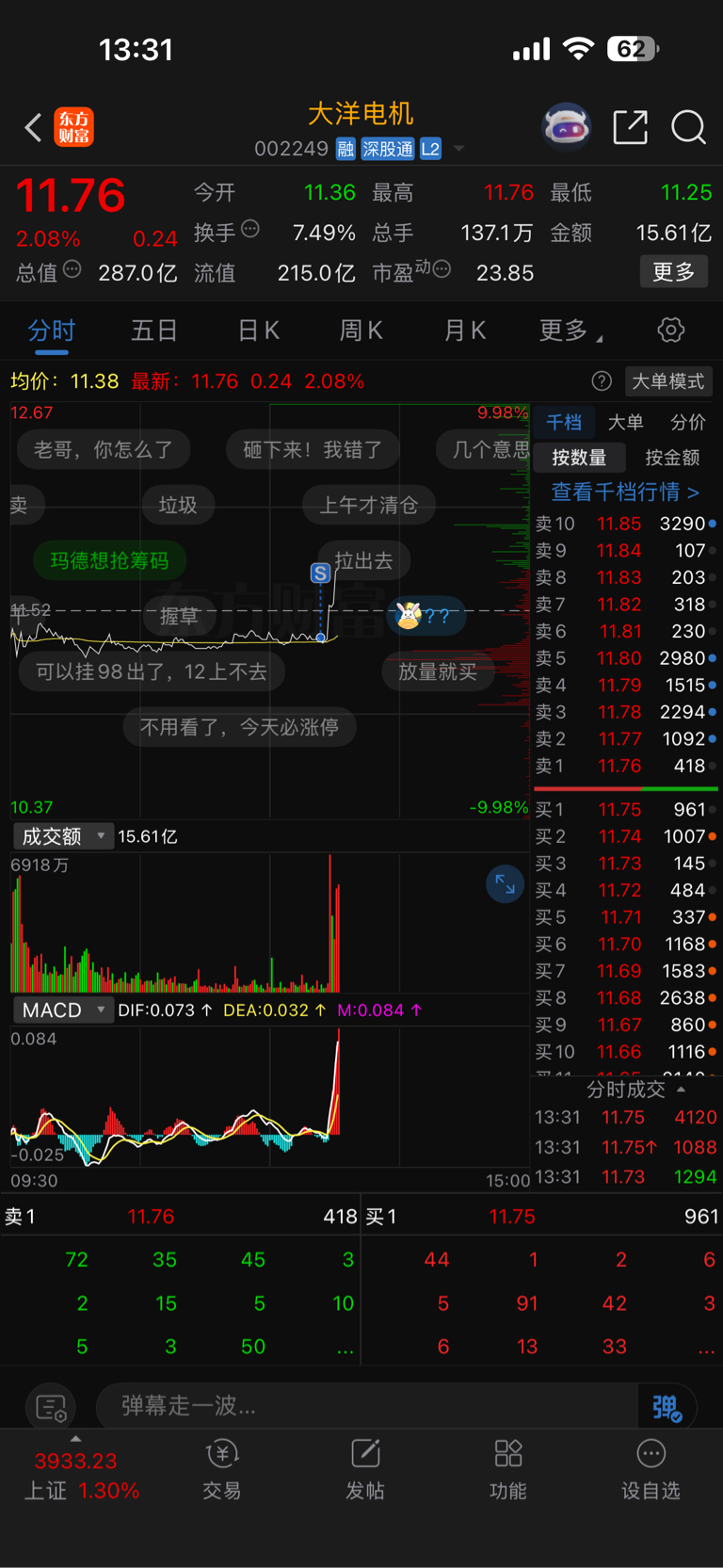 $大洋电机(SZ002249)$ 精准控盘,这股跟我没缘分,再见