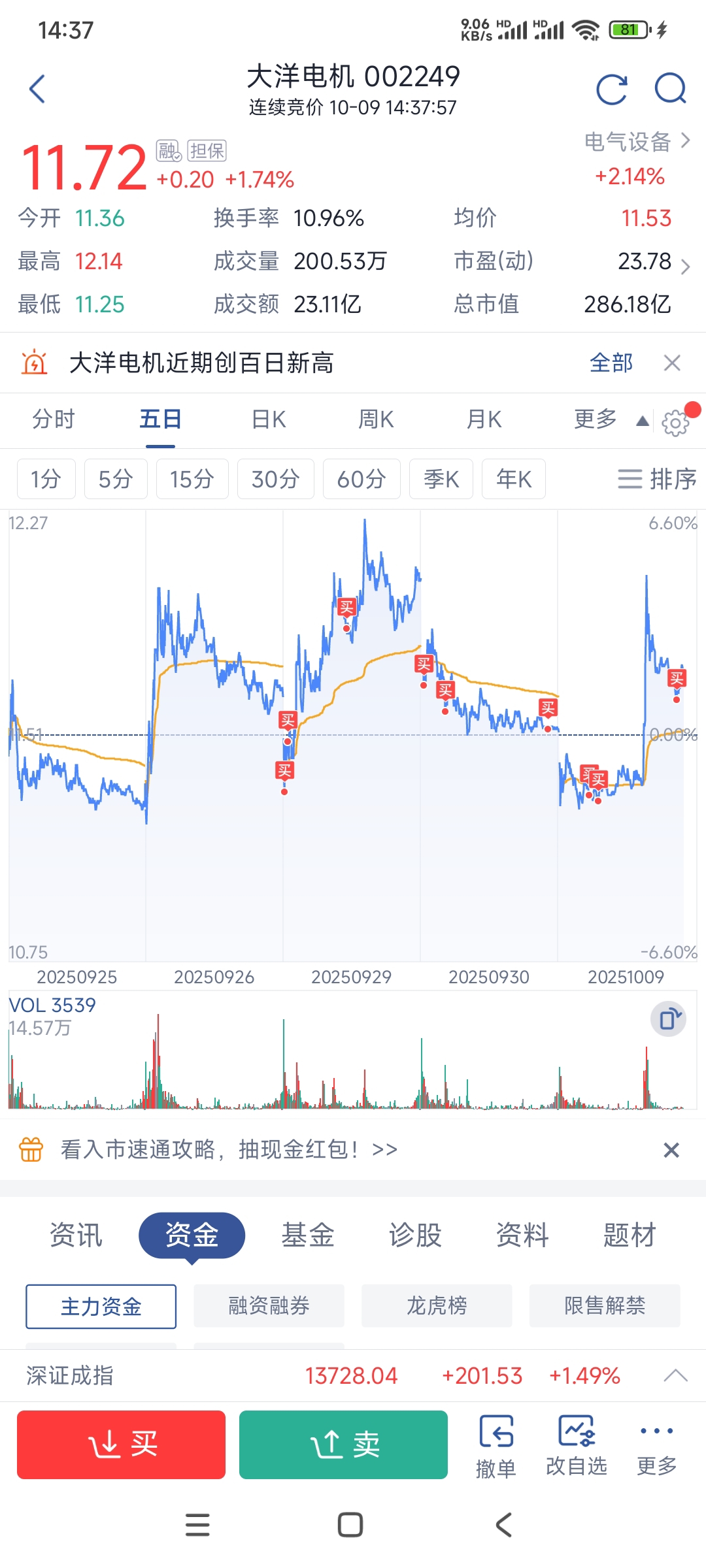 五日线之下要慢慢买,越靠近10日线就越要加码买!此股妖气已经形成,主力既然要做这