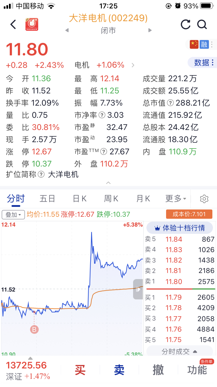 $大洋电机(SZ002249)$ 看到某些空苟说下午是拉高出货,这些213不亏谁亏?早上下跌极致缩量,说明主力珍惜手上筹码锁仓了,所以中午休市时我说可以加仓了,随时可能拉升.下午拉升时是放量,是真金白银大单吃货. 一直重仓目前7.1的成本,前面一波主升浪吃的饱饱的,空苟们,你们那么能耐,赚了几个点?