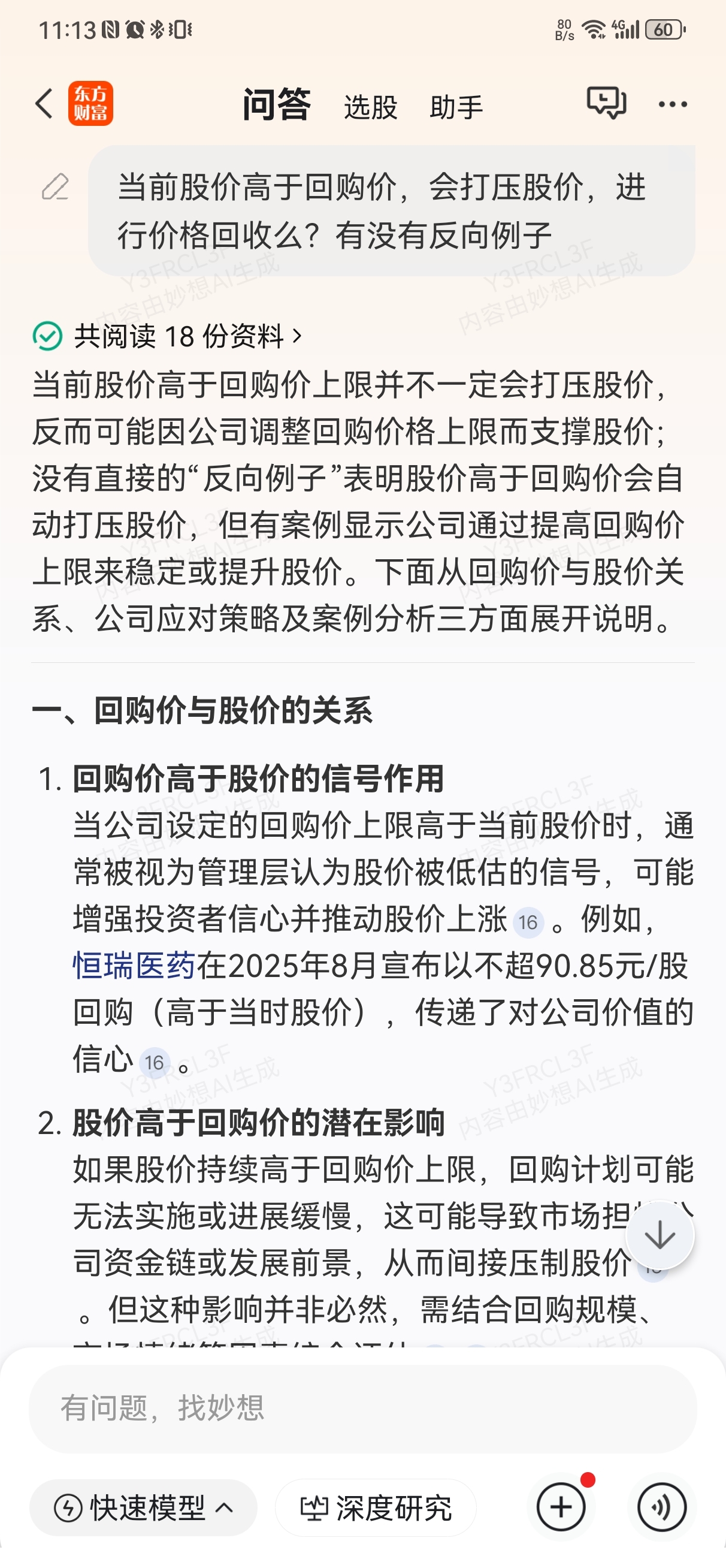 当前股价高于回购价,会打压股价,进行价格回收么?有没有反向例子@正向指标