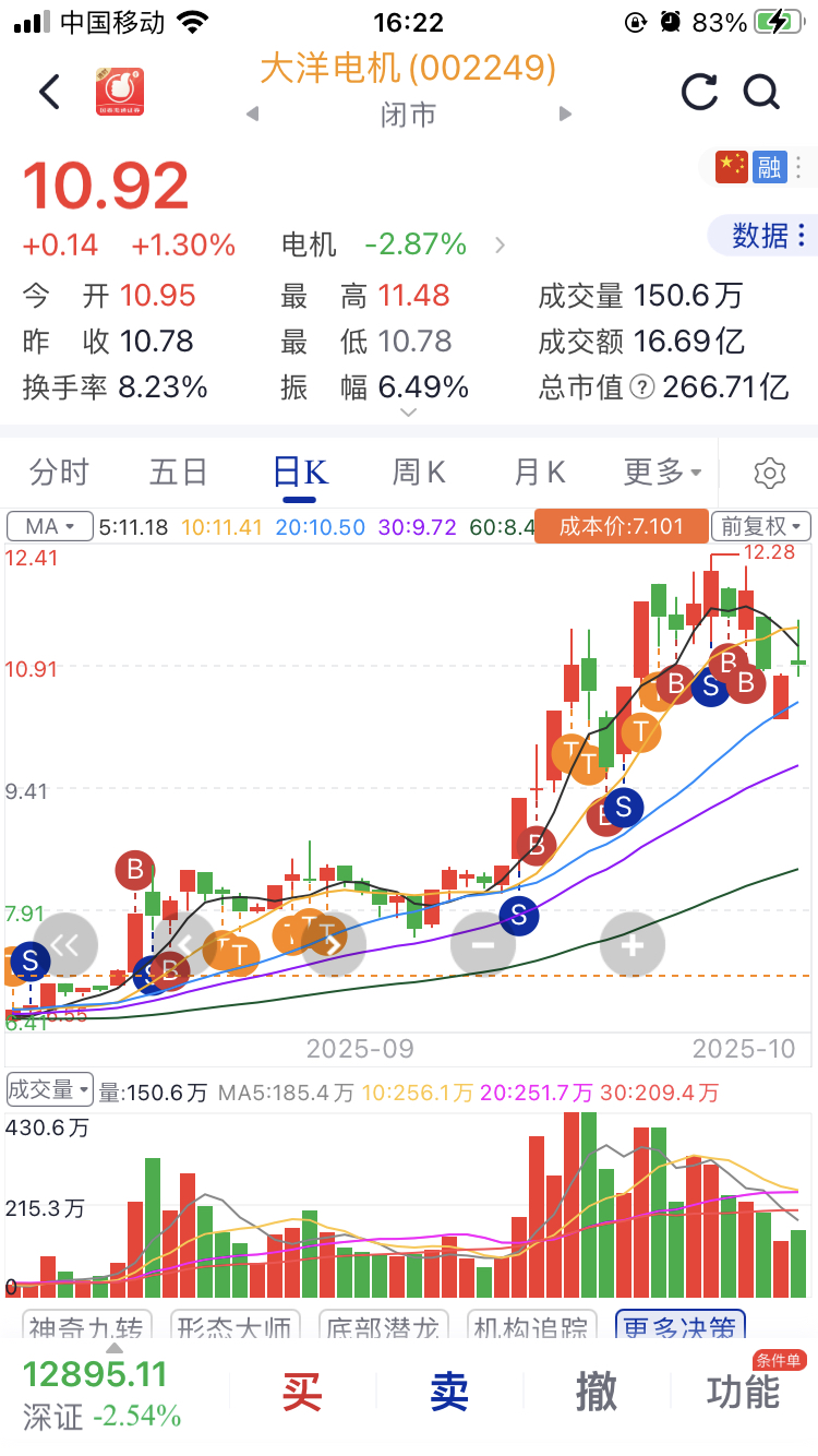 $大洋电机(SZ002249)$ 满仓成本7.1,无惧调整,不翻倍不走.
