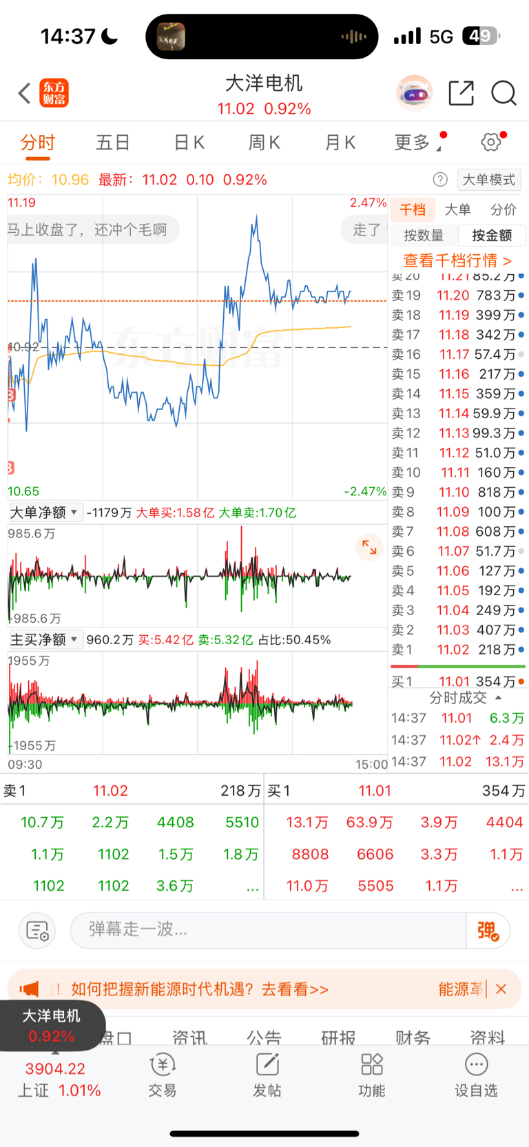 $大洋电机(SZ002249)$ 大洋得罪谁了。为何压几千万。。。。股民又得罪谁了。大跌跑不掉。大涨没有我们份