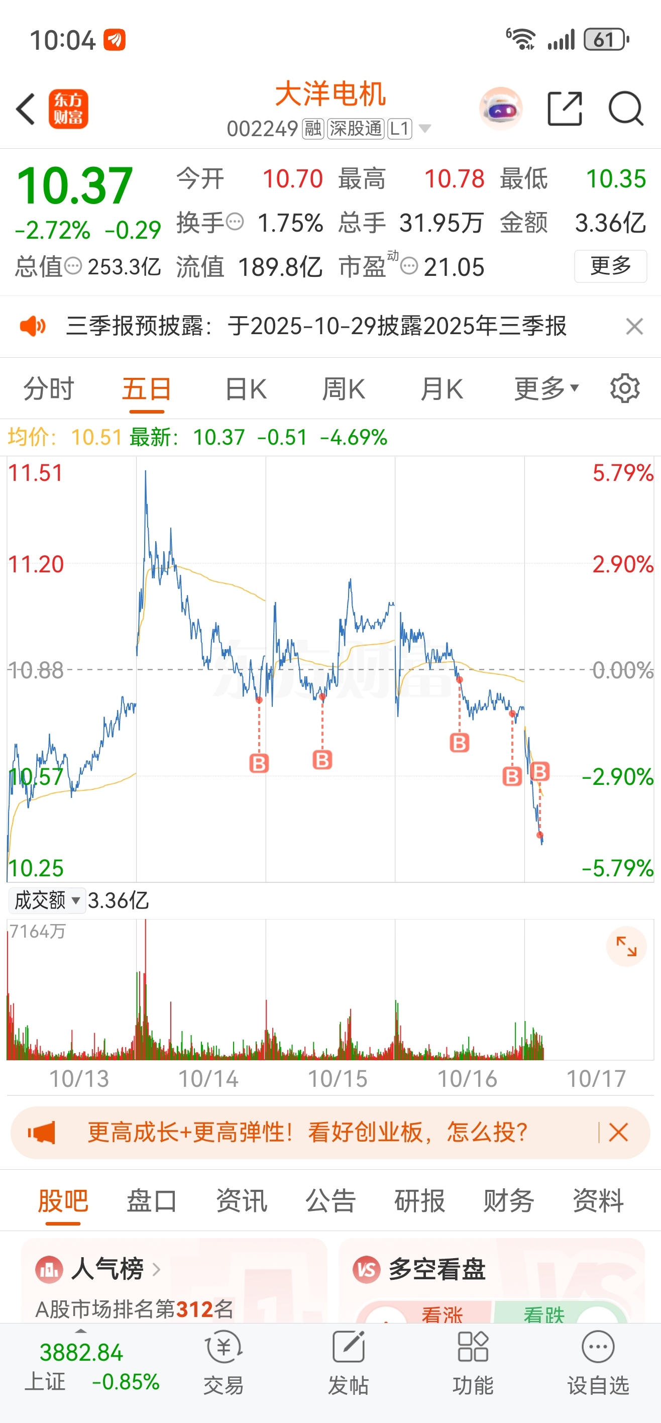 $大洋电机(SZ002249)$ 一路补仓,何时是头