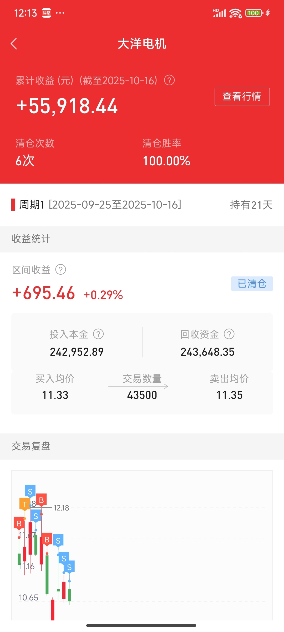 大洋电机我一买他就涨,我一卖他就跌,操作了6次,没有一次失手。下次破10元我还会