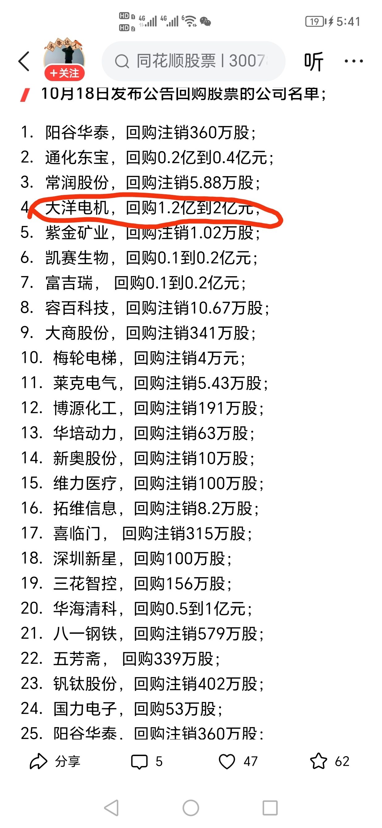 这个大洋它的基本面这么好,回购我觉得只是价值回归,未来可期,总有卖飞的和关望的朋