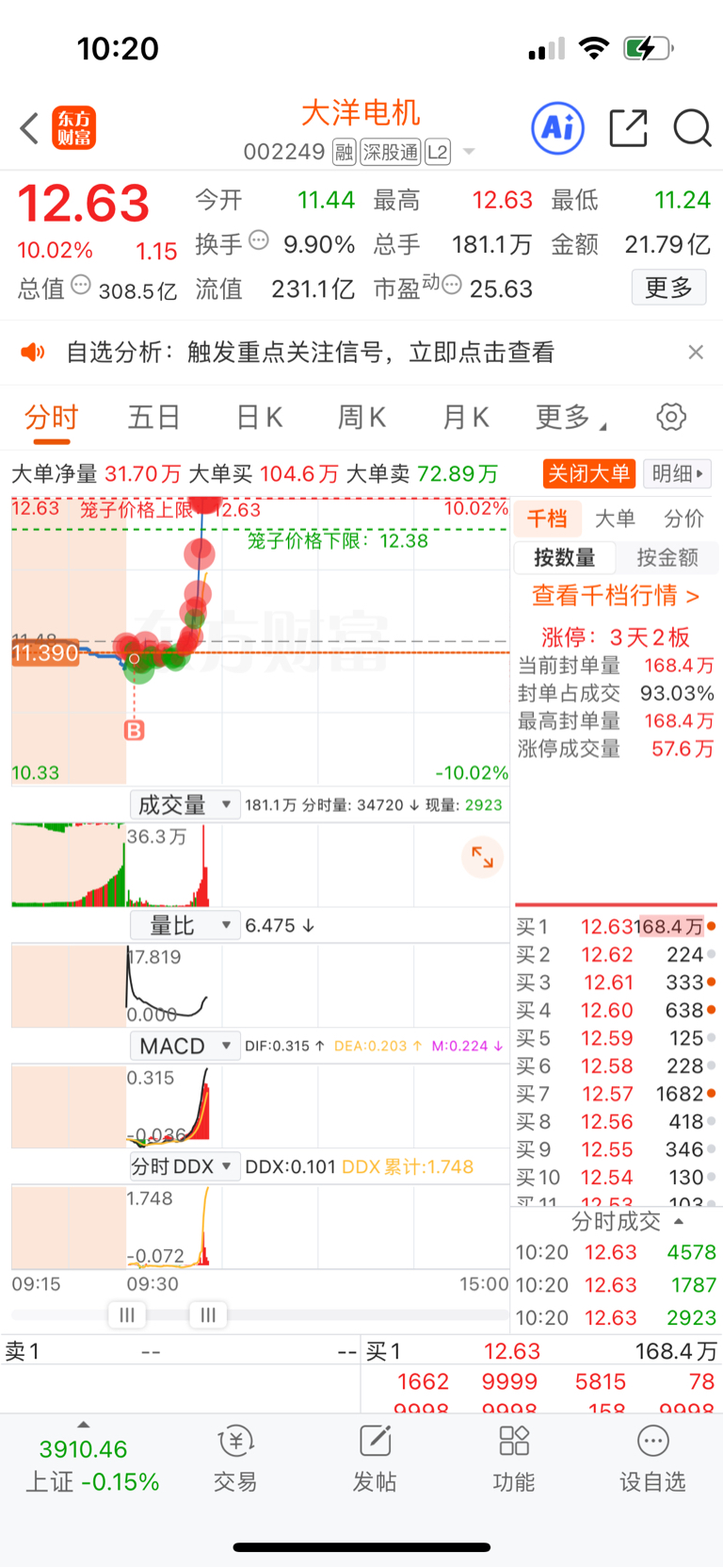 $大洋电机(SZ002249)$ 买少了