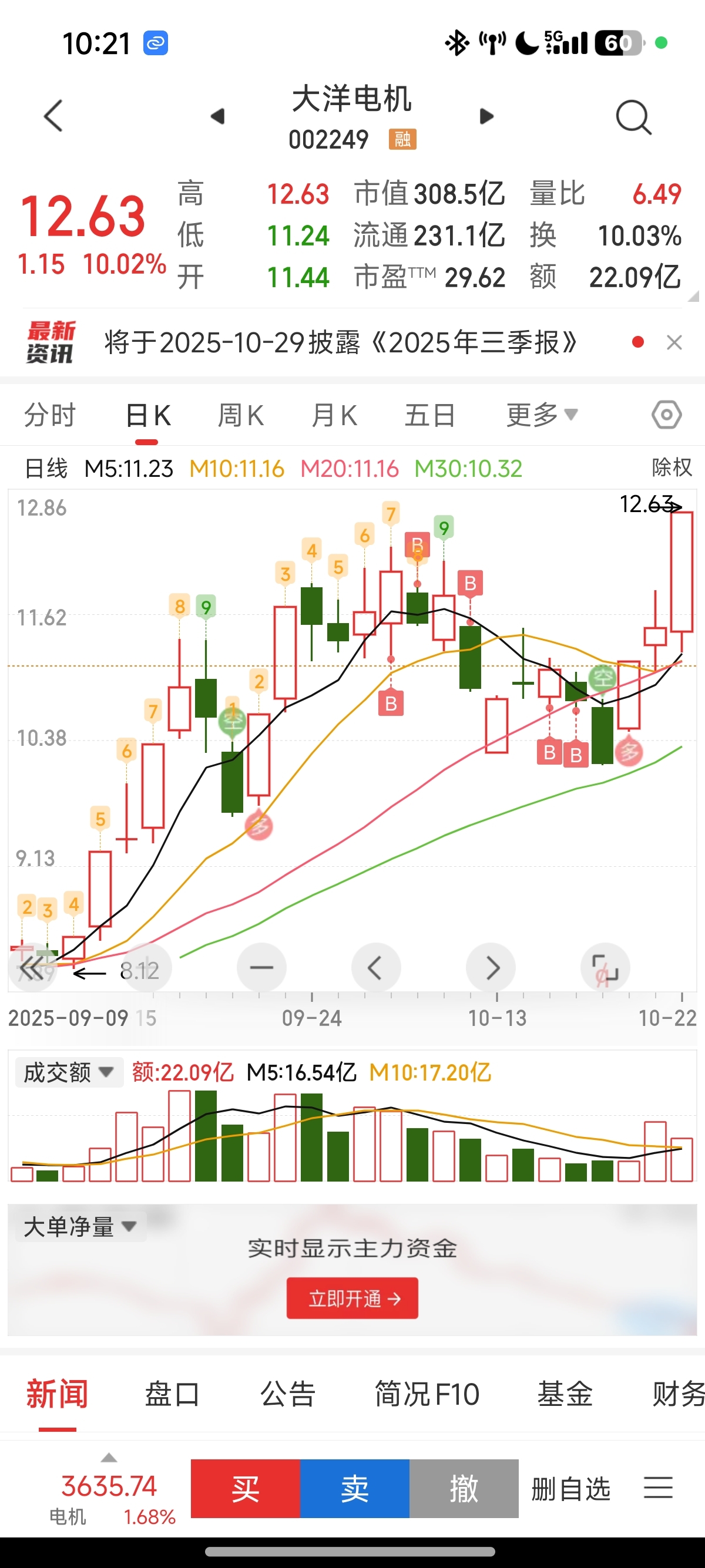 $大洋电机(SZ002249)$ 昨天才回本,今天就盈利啦~