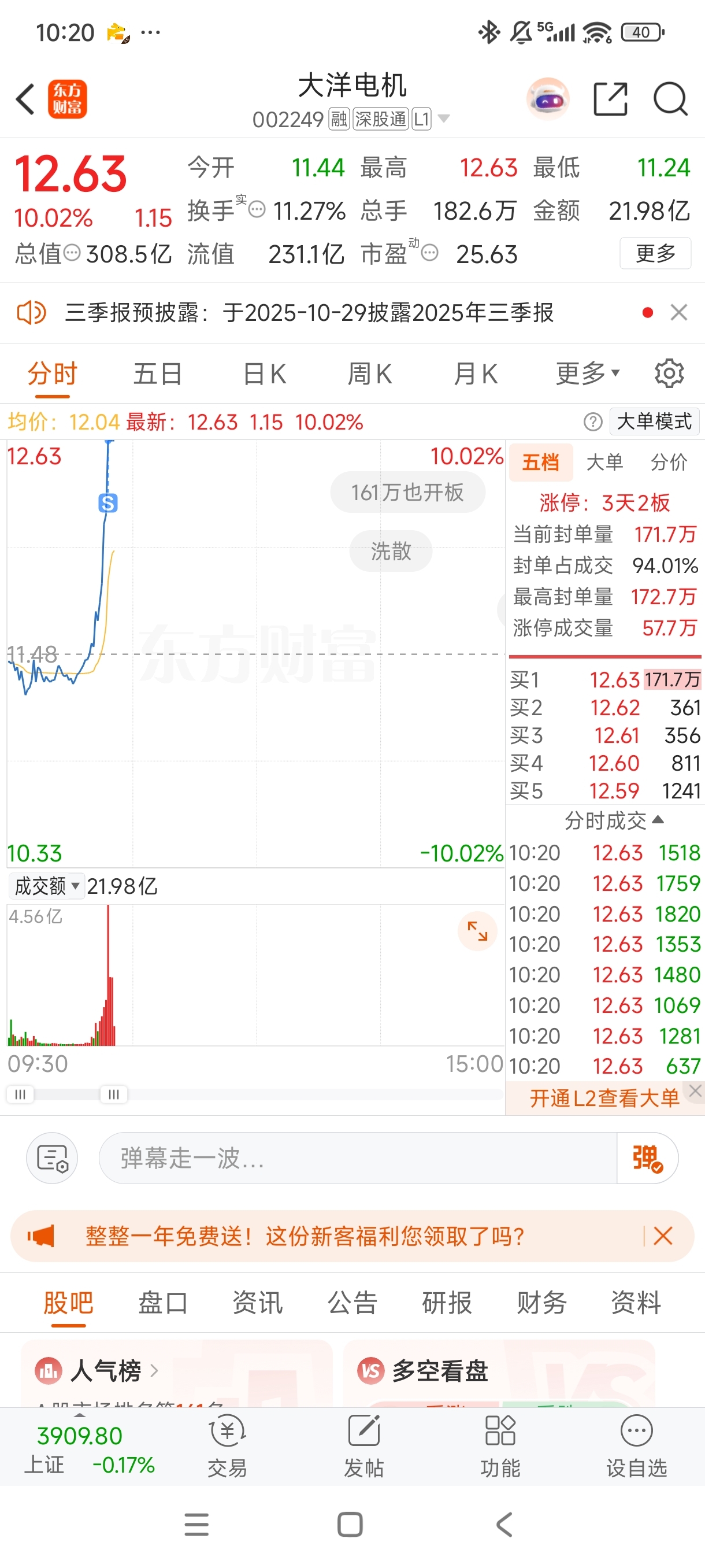 $大洋电机(SZ002249)$ 我砸的