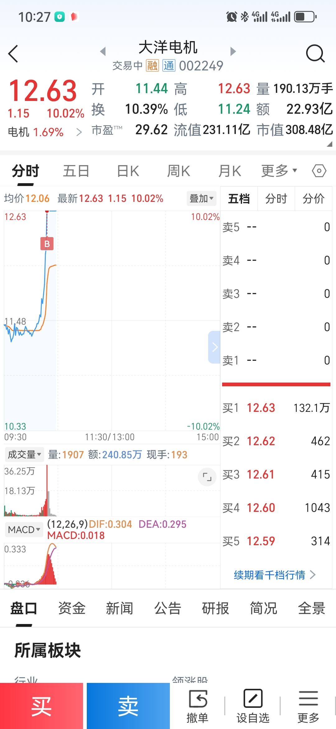 $大洋电机(SZ002249)$ 全仓买入,生死有命富贵在天