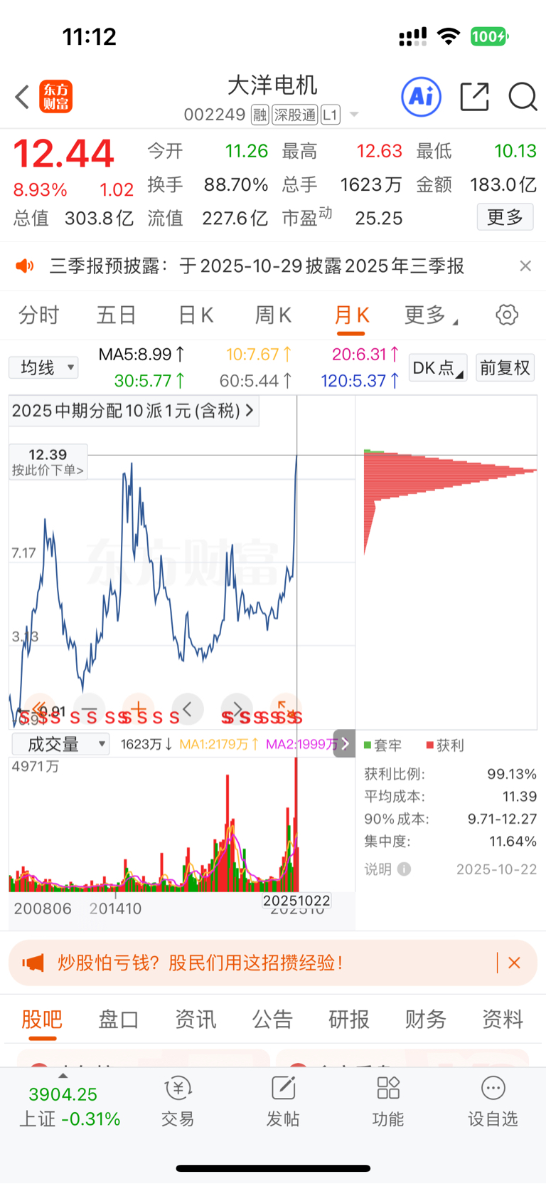 $大洋电机(SZ002249)$ 这竟然是大洋历史新高!