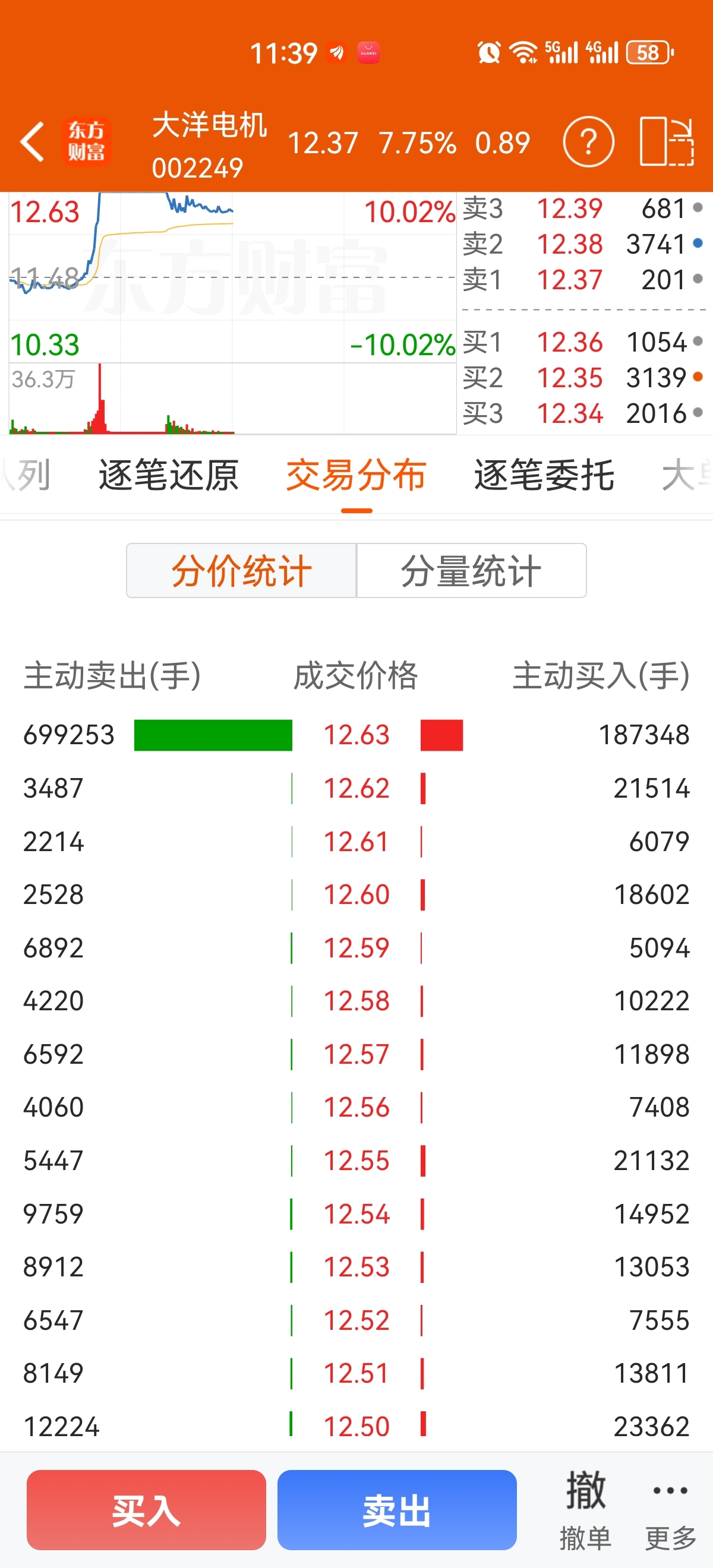 $大洋电机(SZ002249)$ 这涨停价卖出太大了吧