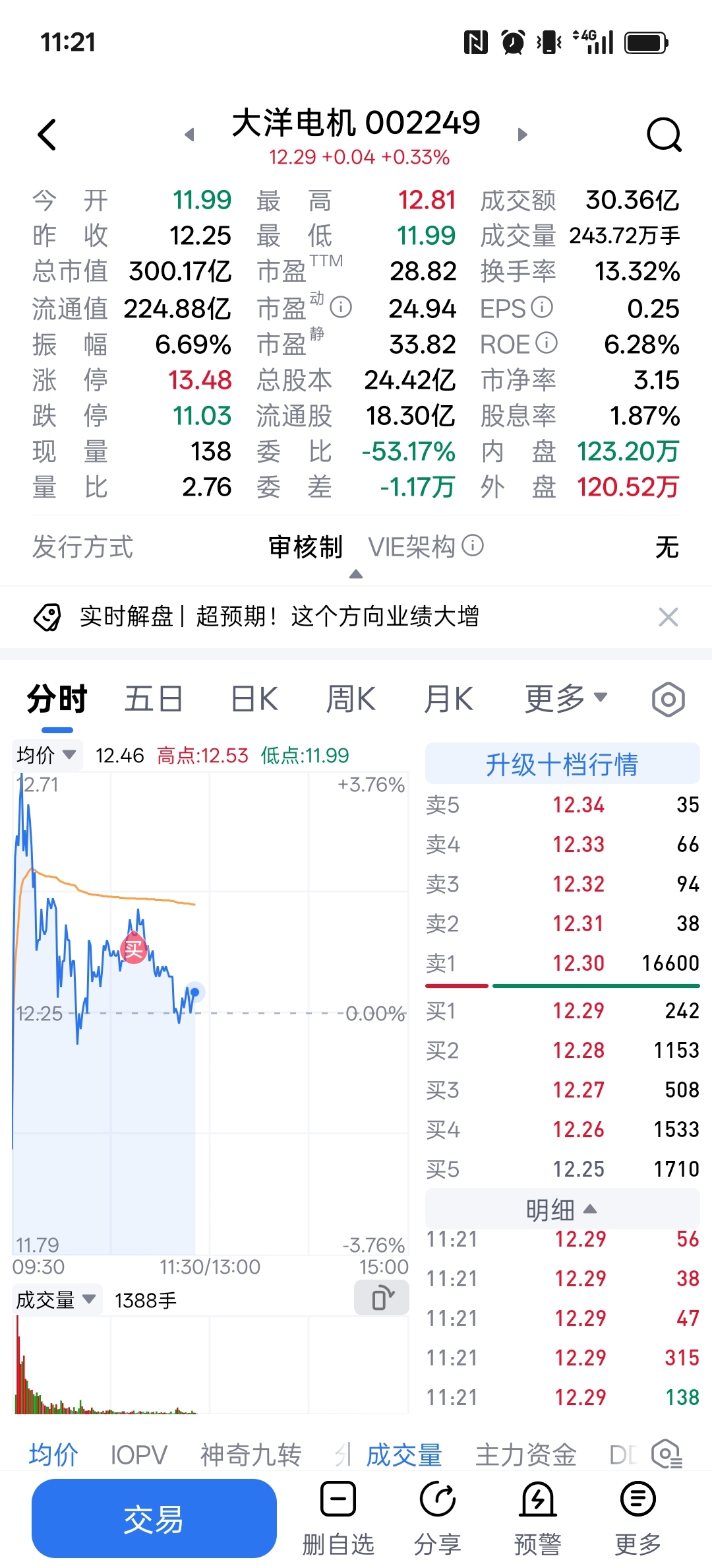 $大洋电机(SZ002249)$ 主力这是什么意思?