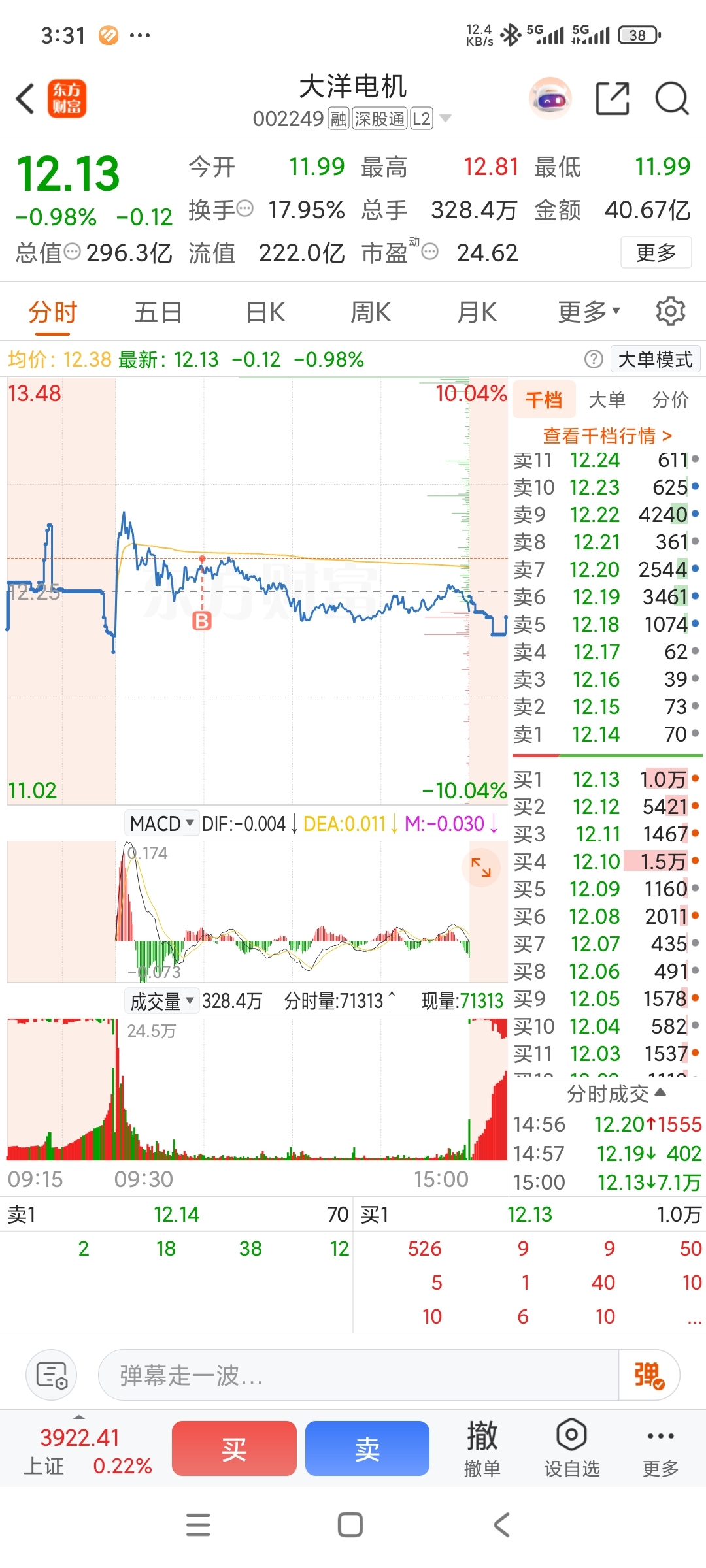 $大洋电机(SZ002249)$ 明天核按钮了吗?曹尾盘绿了