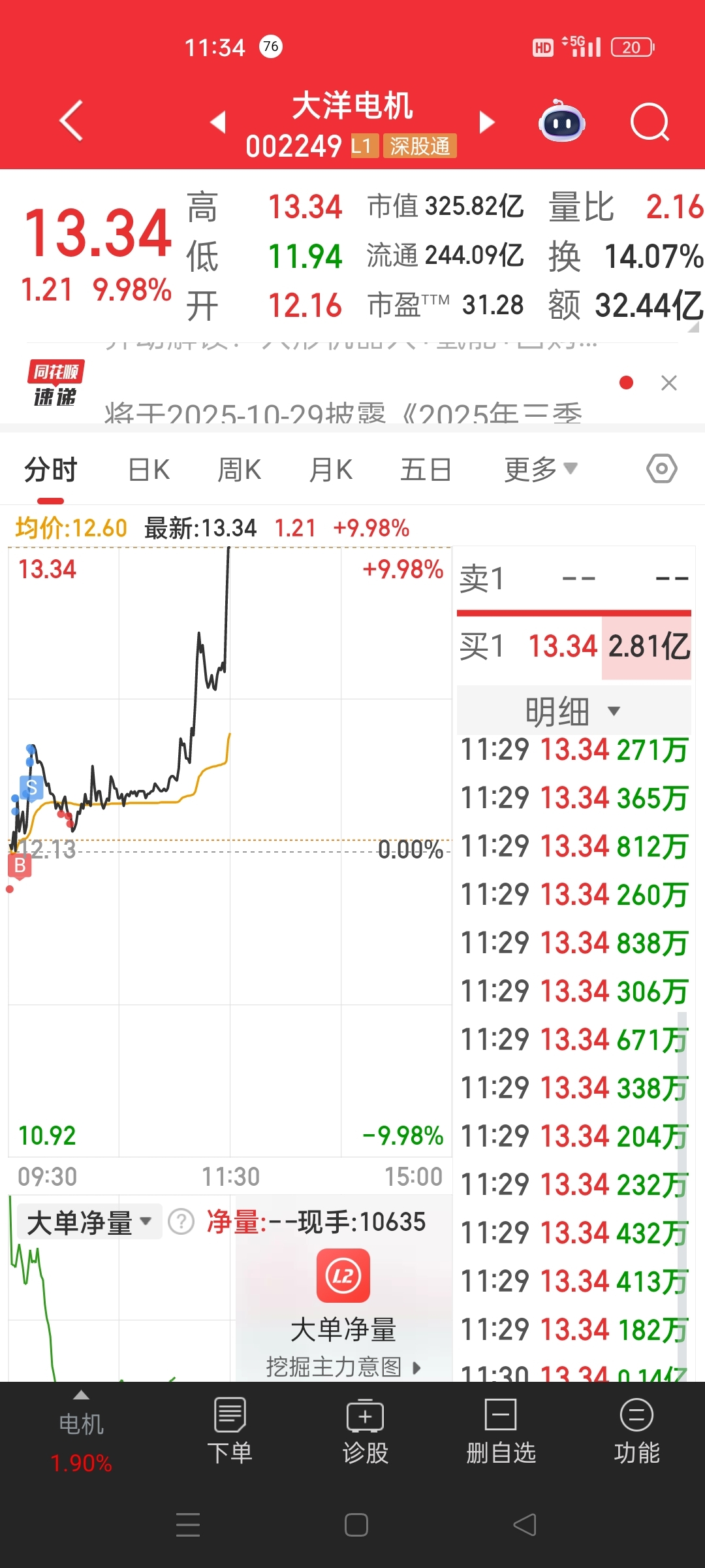 $大洋电机(SZ002249)$ 嘛蔽,卖飞了