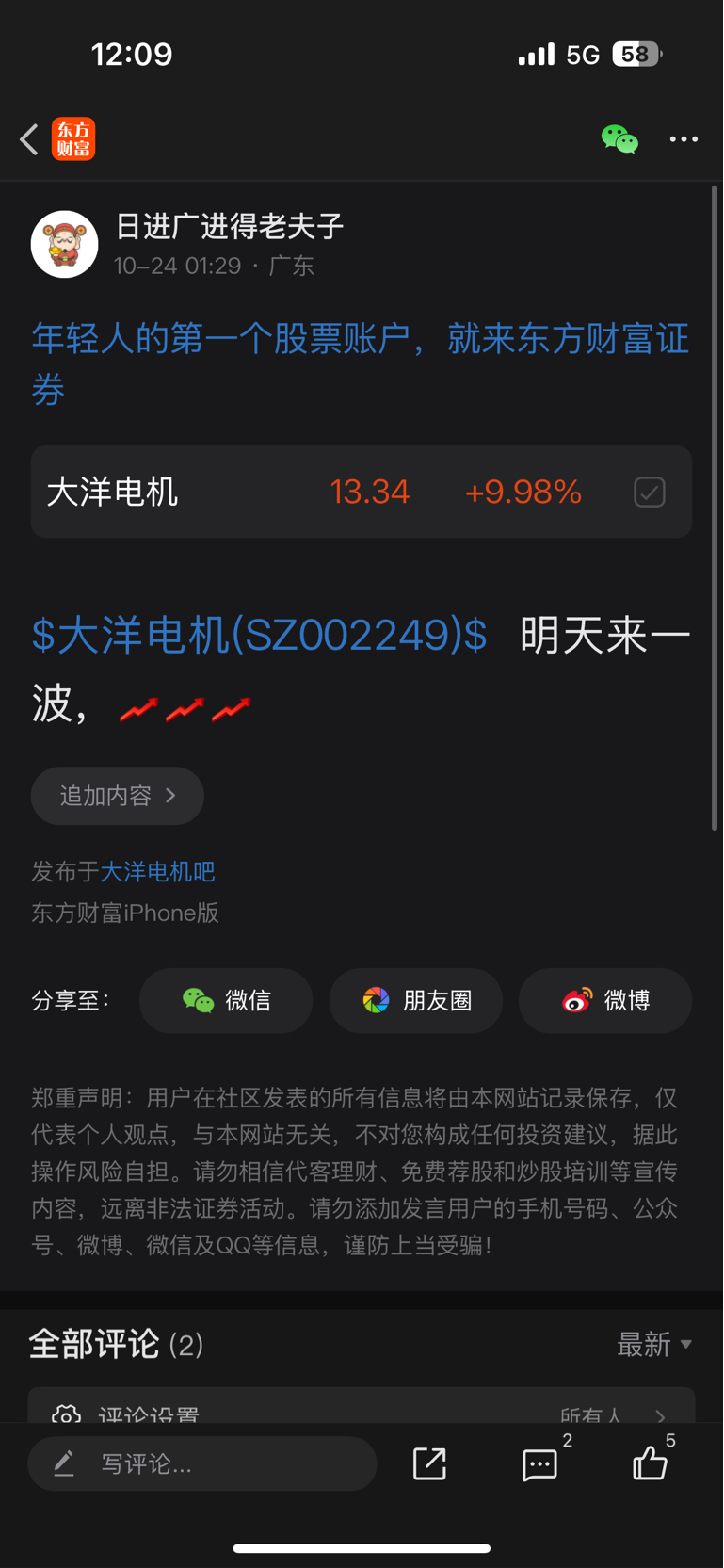 温馨提示: 1.根据《证券法》规定,禁止编造、传播虚假信息或者误导性信息,扰乱证券市场;2.用户在本社区发表的所有资料、言论等仅代表个人观点,与本网站立场无关,不对您构成任何投资建议。用户应基于自己的独立判断,自行决定证券投资并承担相应风险。《东方财富社区管理规定》