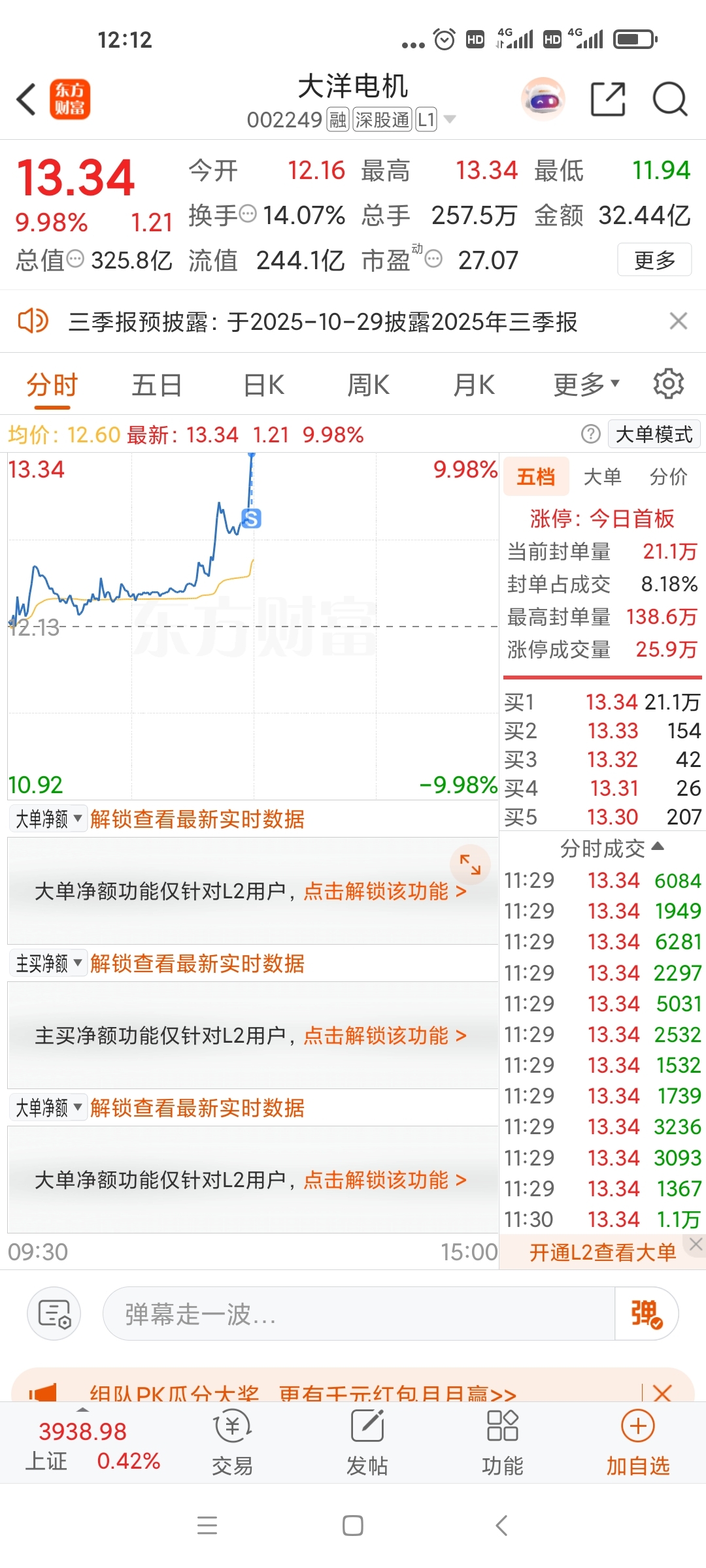 $大洋电机(SZ002249)$ 挂涨停卖飞了,没想到能涨停太快了。