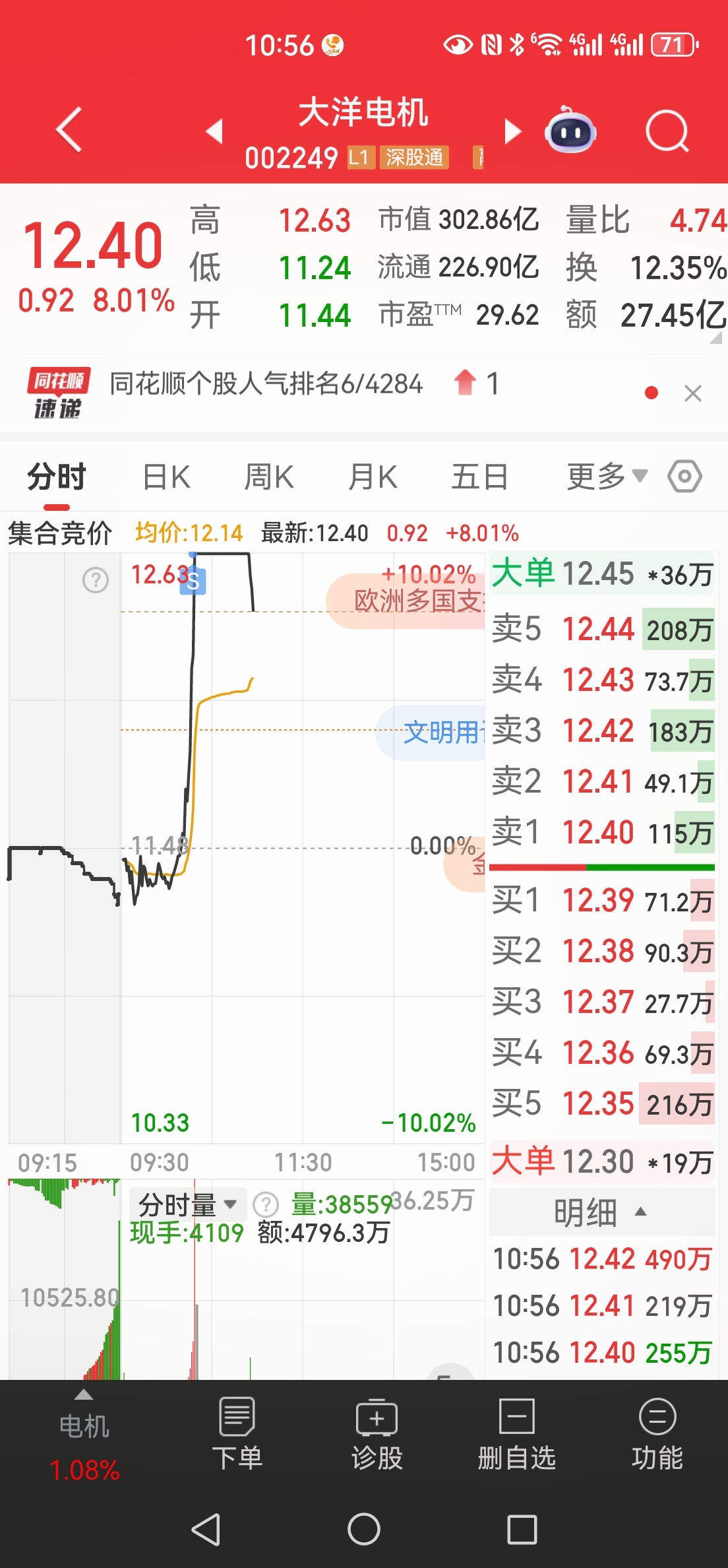 同花顺每次发都不给发,我说下今天的看法今天涨停挂卖没有挂出去然后12.97挂出去