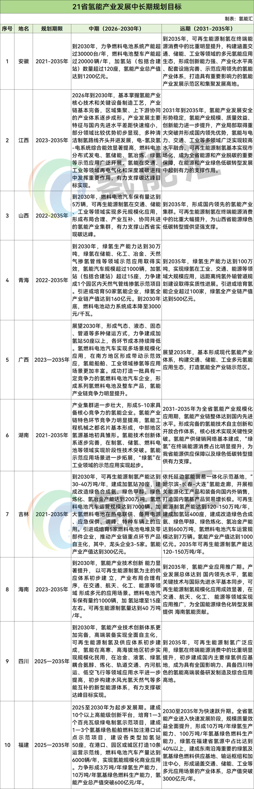 21省!未来10年氢能规划出炉!