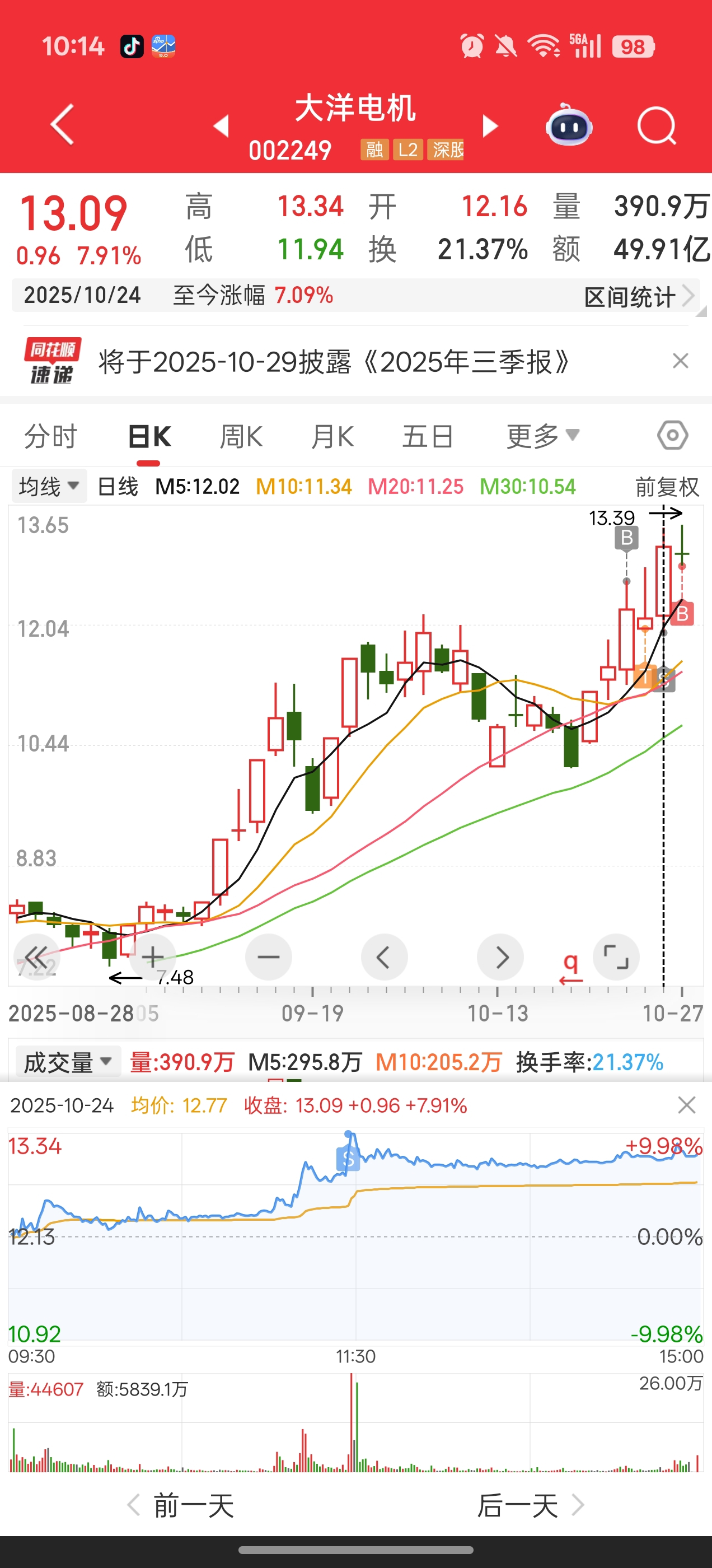 $大洋电机(SZ002249)$ 水下在接回