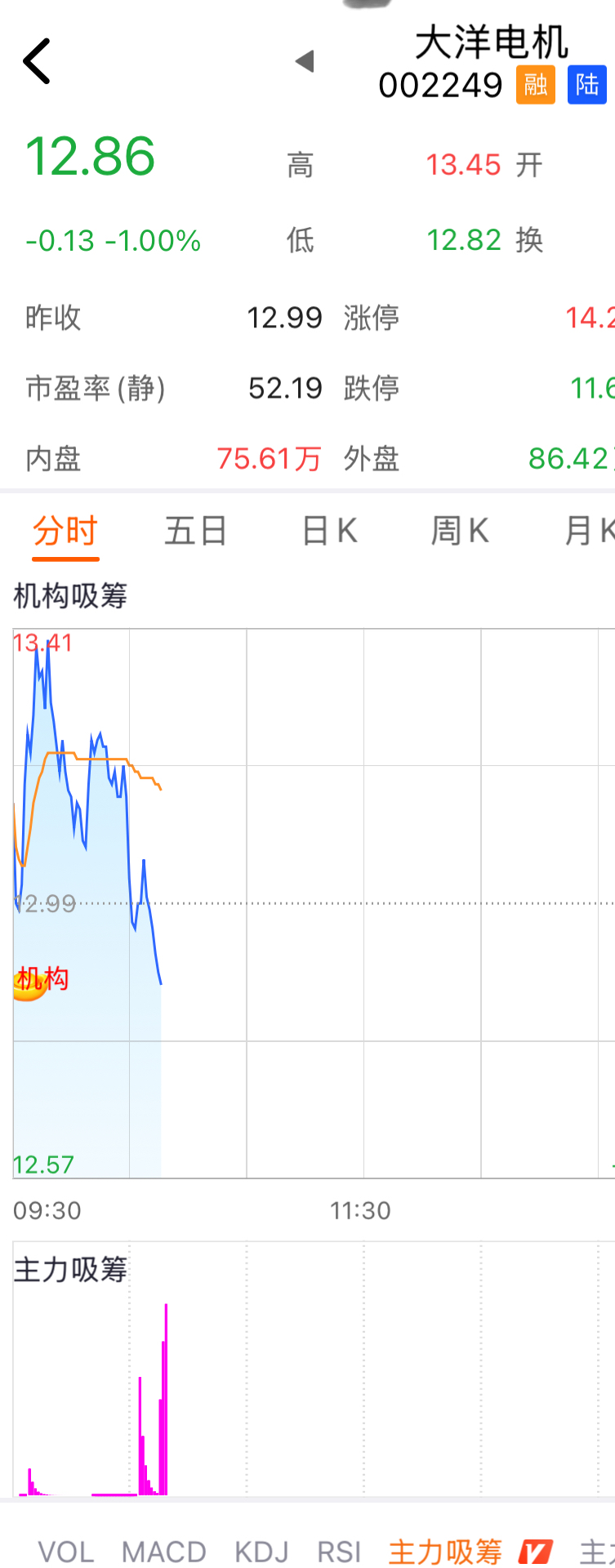 $大洋电机(SZ002249)$ 开始吸筹码