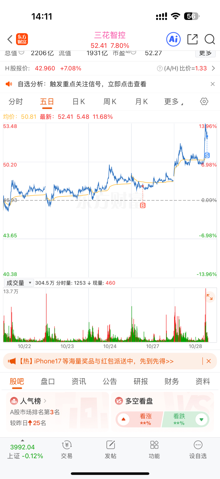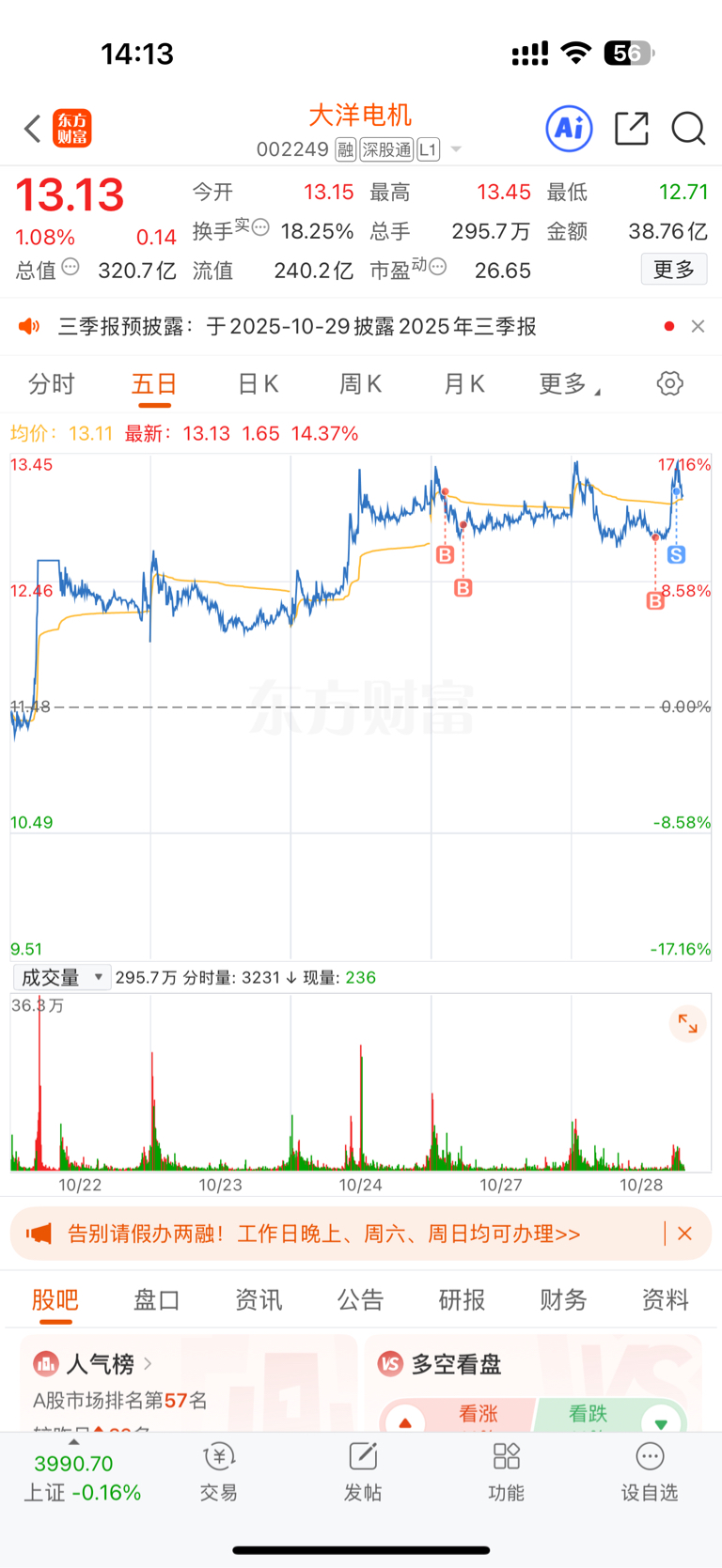 $大洋电机(SZ002249)$ $三花智控(SZ002050)$ 完美,大洋继续加油,三花你敢跌我加仓