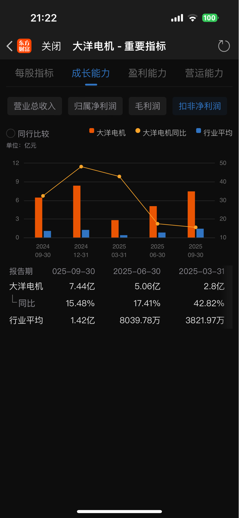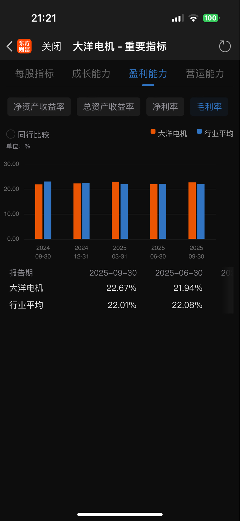 $大洋电机(SZ002249)$ 简单解读下业绩报,电机行业中净利润还是霸榜第一名,第三季度不管是净利润还是扣非净利润都是增长的,更为重要的是毛利率的提升,简单的理解就是公司主营产品更加值钱了,同一个产品,以前只能卖20块,现在能卖25元了,这就有了更好的预期了,其实这个比利润还重要