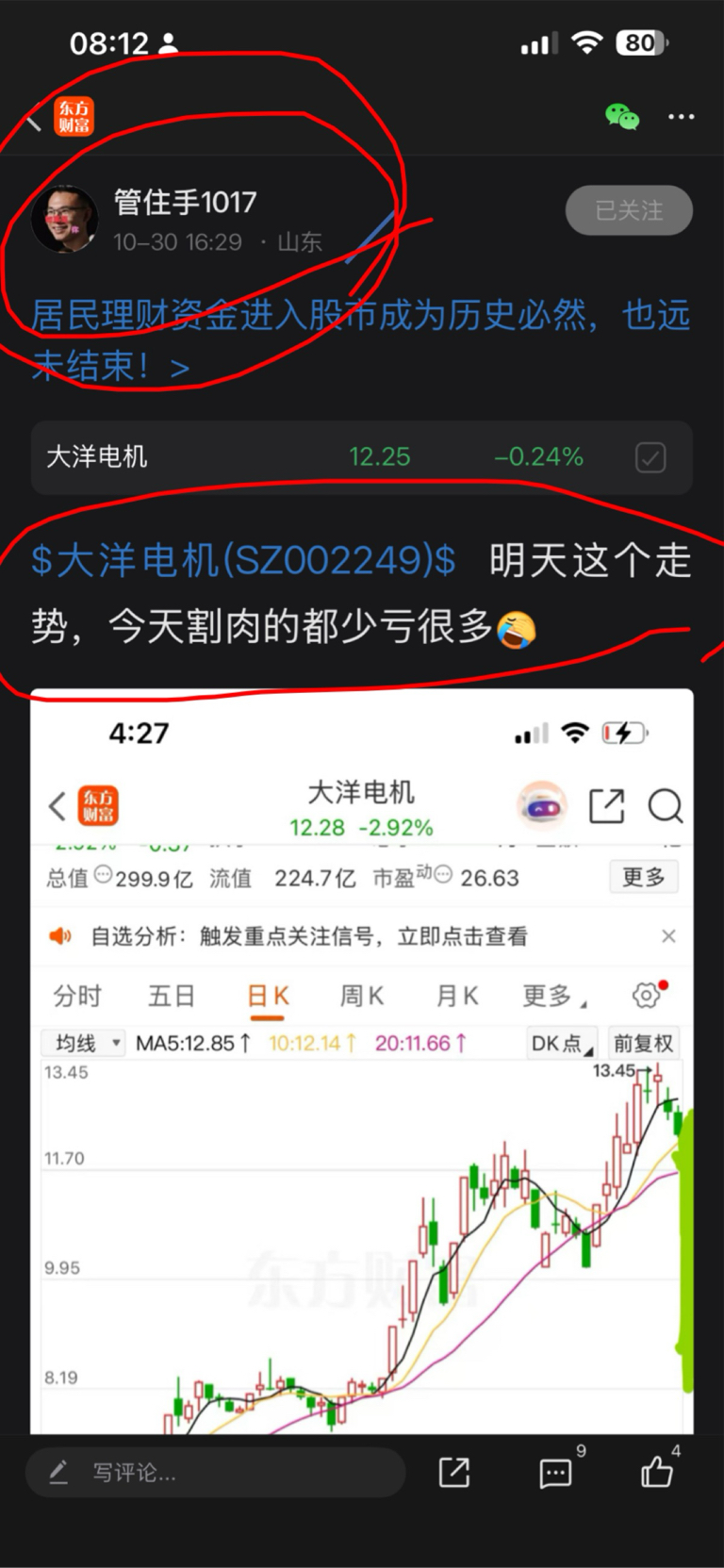$大洋电机(SZ002249)$ #周末杂谈# #股市怎么看# 这货唯恐天下不乱,10月30号预测31号大跌,没一句实话