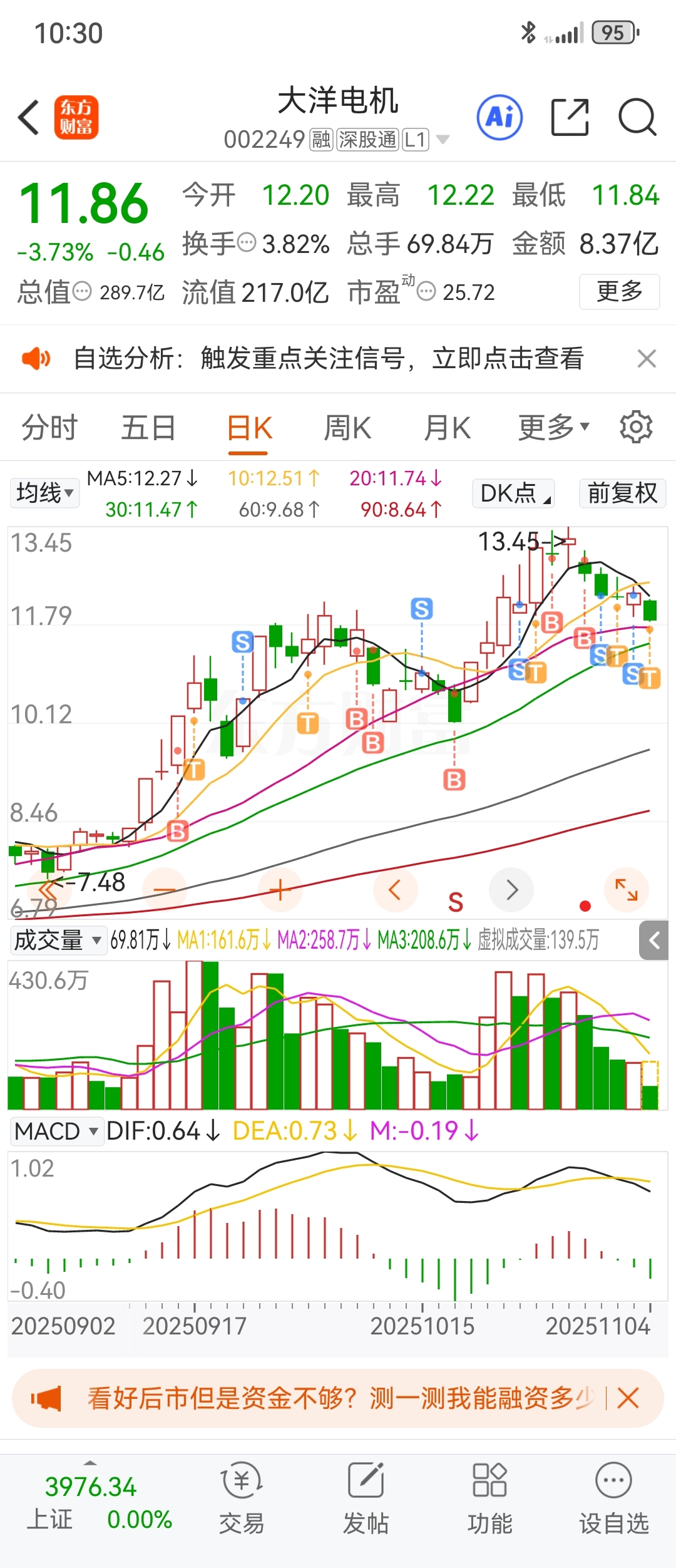 $大洋电机(SZ002249)$ 清仓了,感谢大洋,经历了利润回撤到没有还亏几个点,然后再回到高点,现在又回撤,不扛了