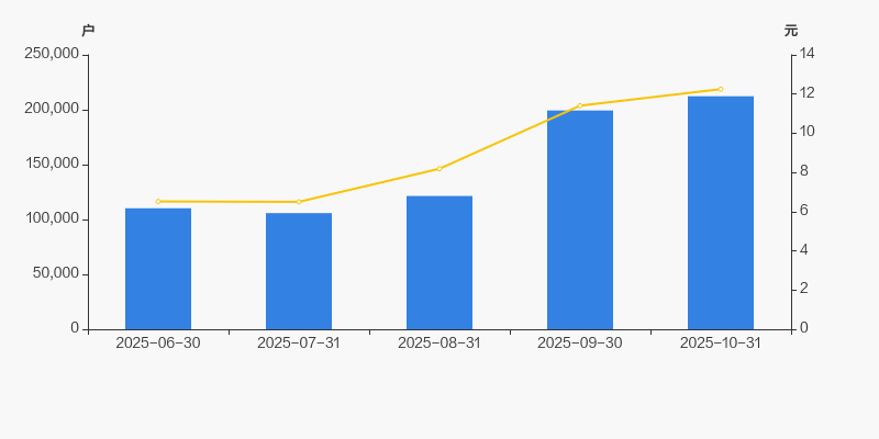 自2025年7月31日以来,公司股东户数连续3期上涨,截至目前增幅为100.62%。2025年7月31日至2025年10月31日区间股价上涨88.49%。
