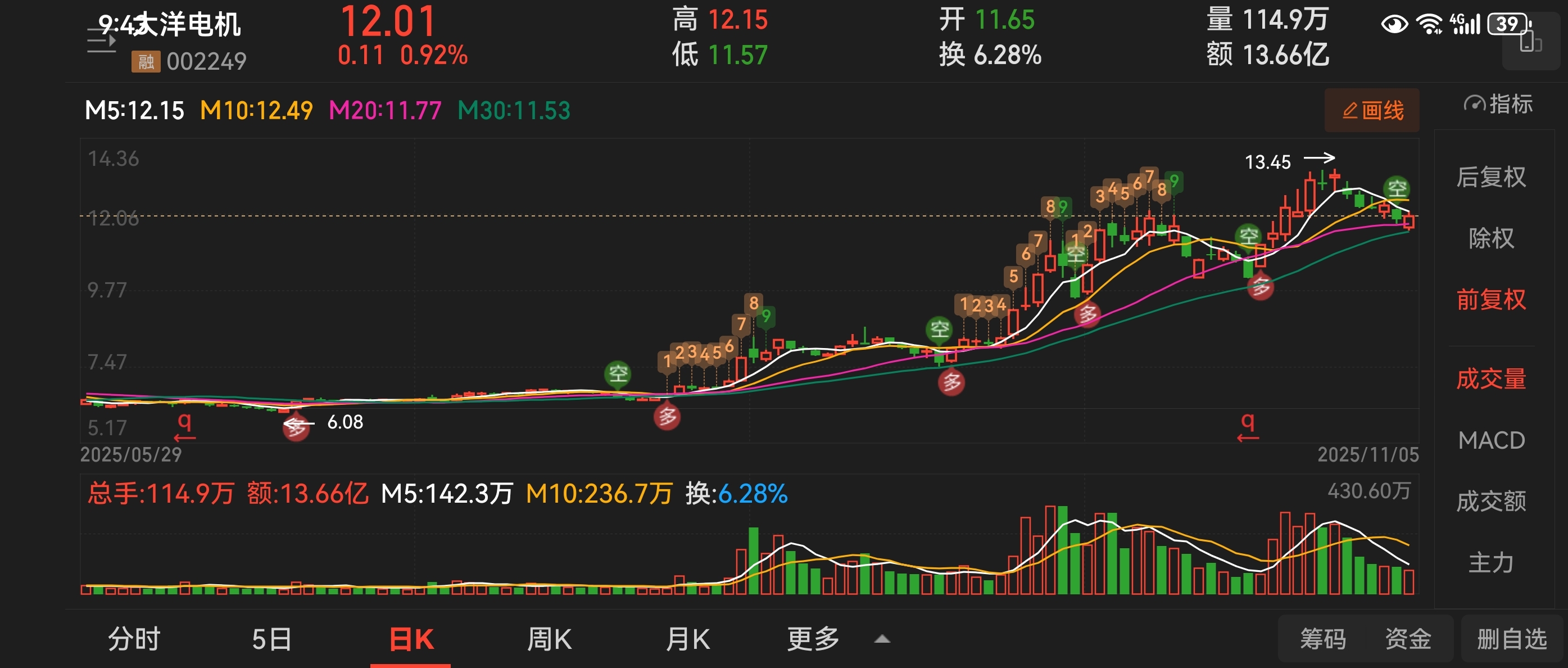 $大洋电机(SZ002249)$ 大洋调整差不多了,简单明了的小票,容易上手,1150三十日线企稳迹象明显,后续看反弹力度