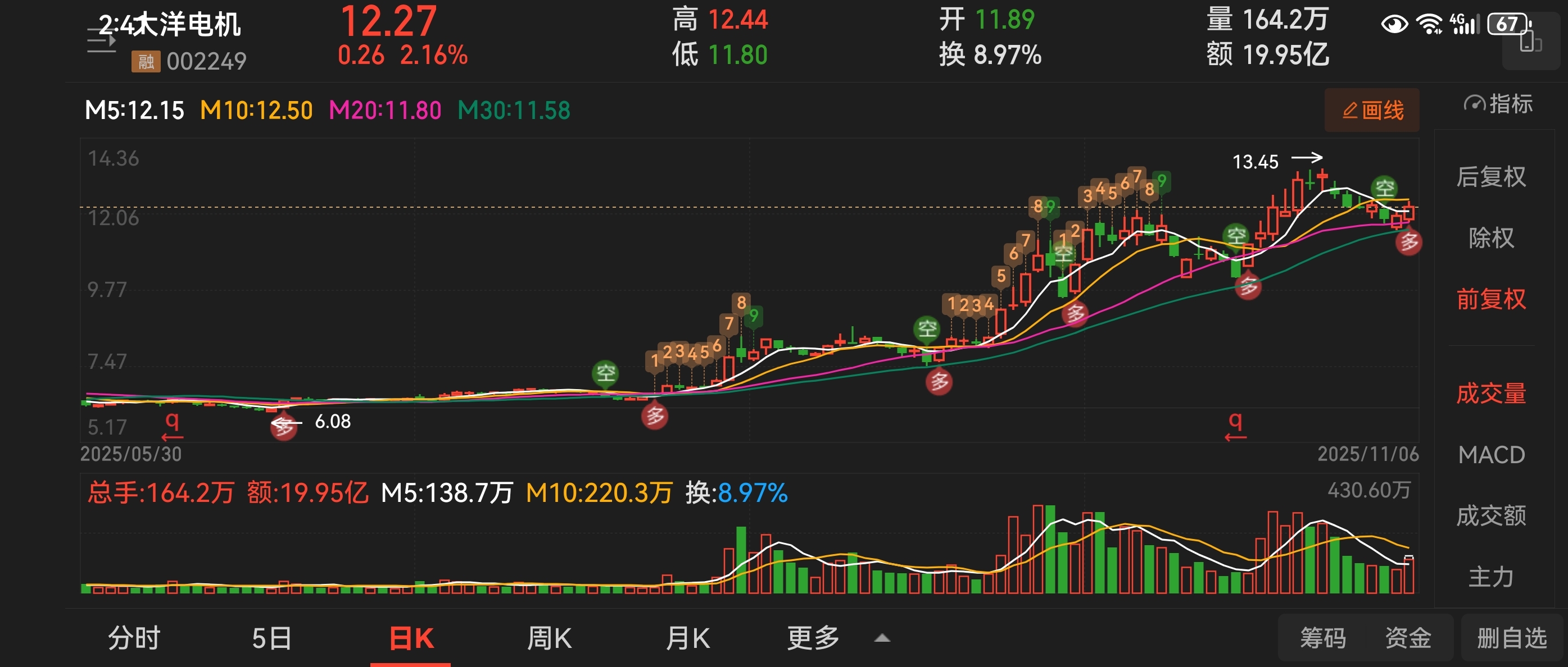 $大洋电机(SZ002249)$ 昨日发帖兑现,红三兵走势,继续看
