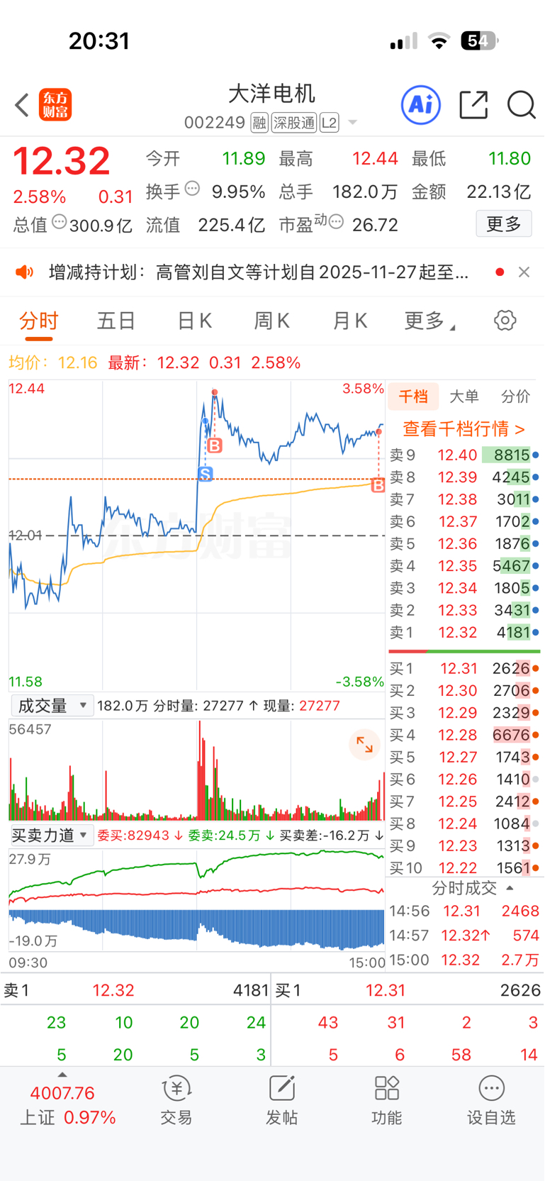 $大洋电机(SZ002249)$ 盘尾又买了点,不知道对不对
