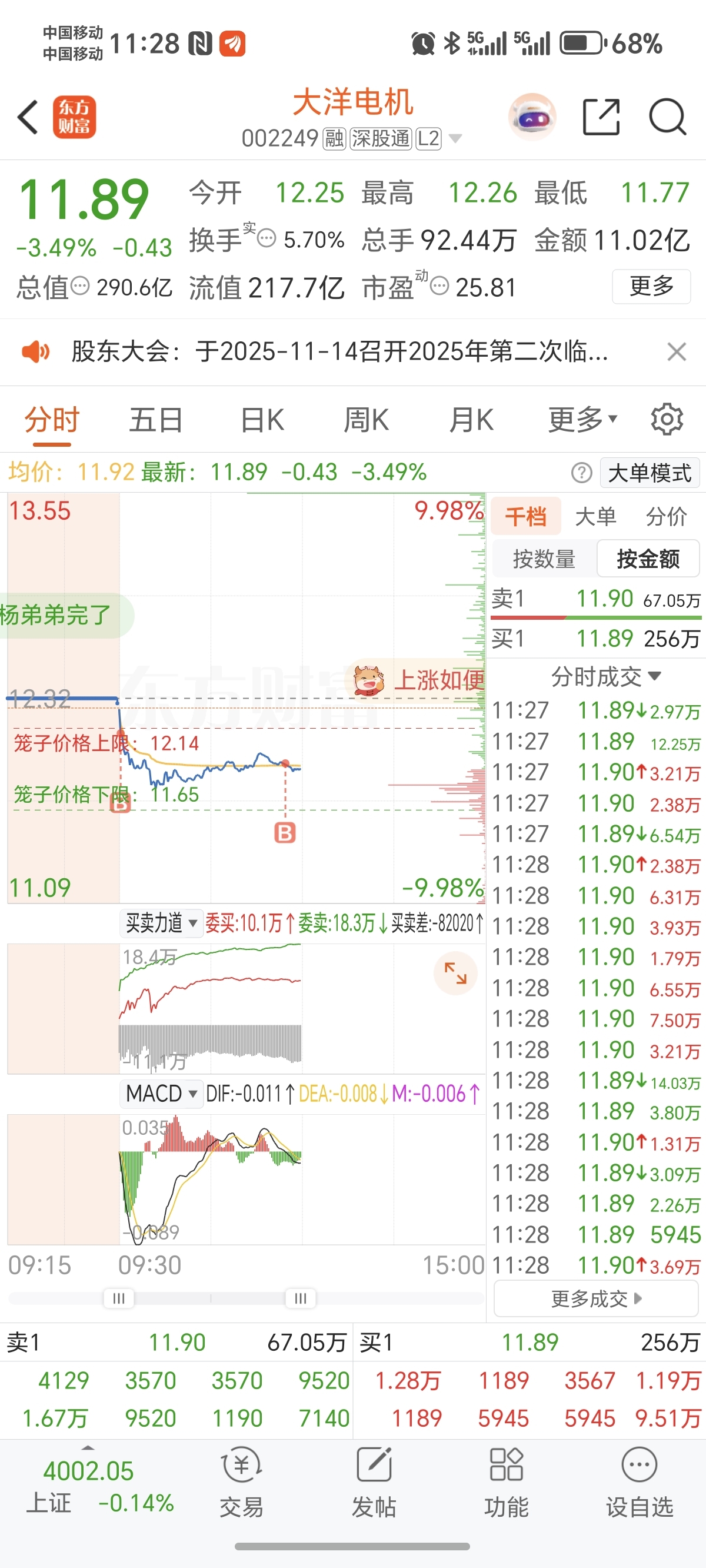 $大洋电机(SZ002249)$ 下午看能不能拉起来
