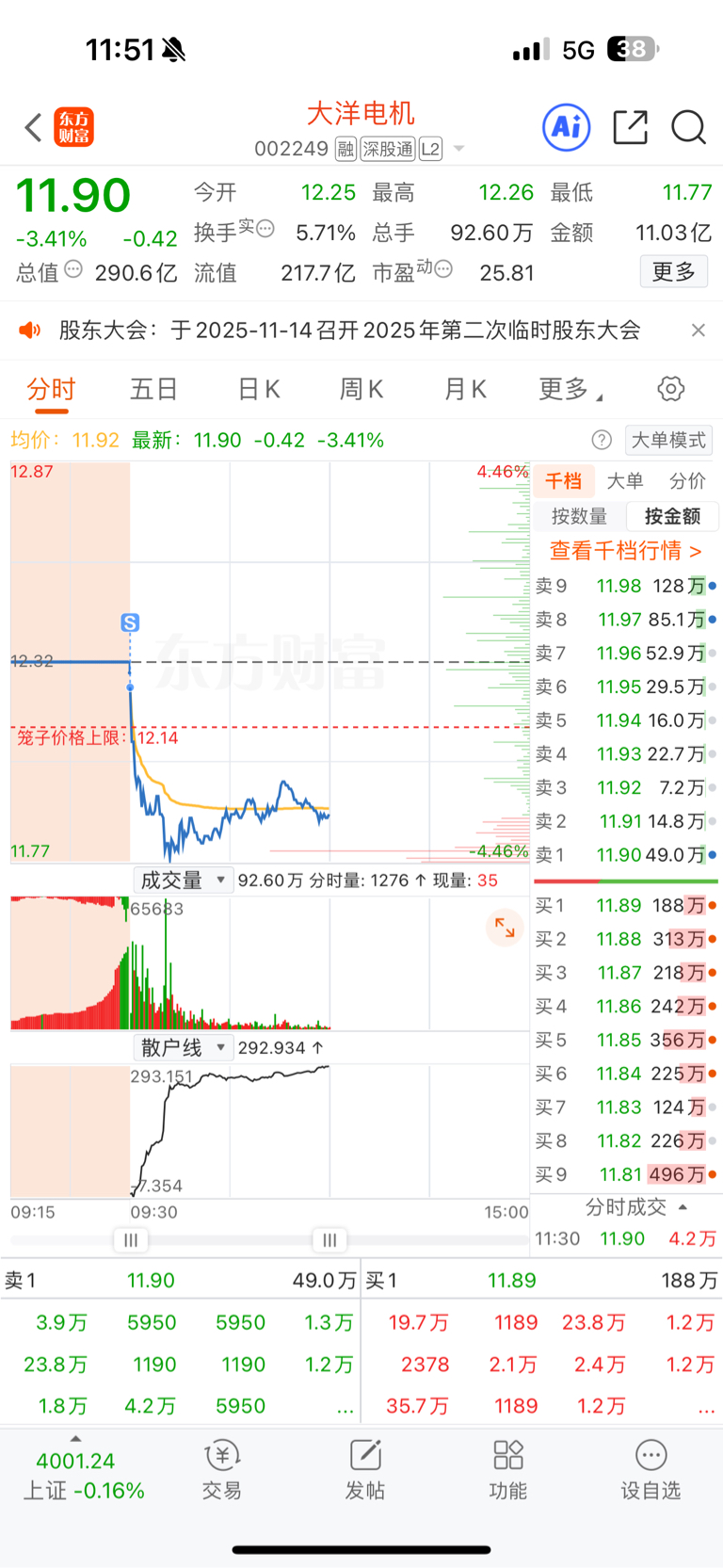 $大洋电机(SZ002249)$ 情况不对,竞价跑了,小吃一口肉