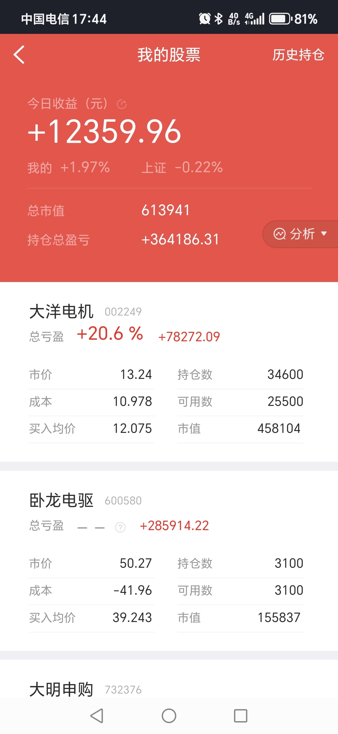 $大洋电机(SZ002249)$ 九月份挣7万8没走 昨天一共亏6.8万割了。。换赛微电子,今天损失补回来了。。这个大洋电机真不给力。。。