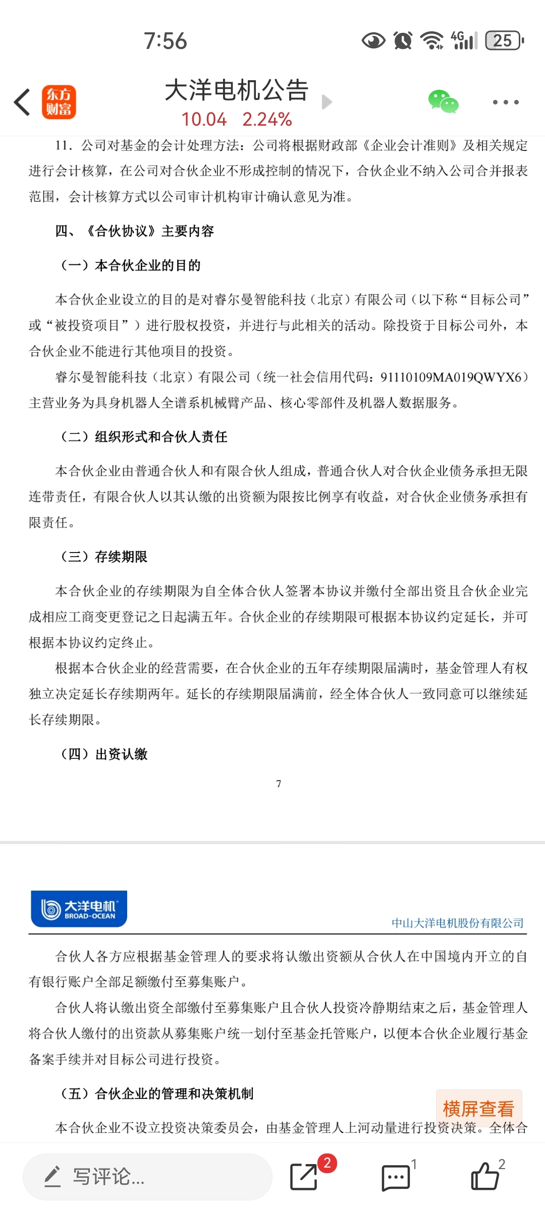 大洋电机投资国内具身机器人睿尔曼,牛逼,明天高开稳啦。