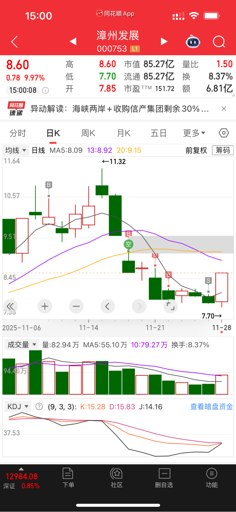 昨天终于下定的决心卖了漳州来买你,结果却是这样,唉,道心破碎,11月账户腰斩,坚