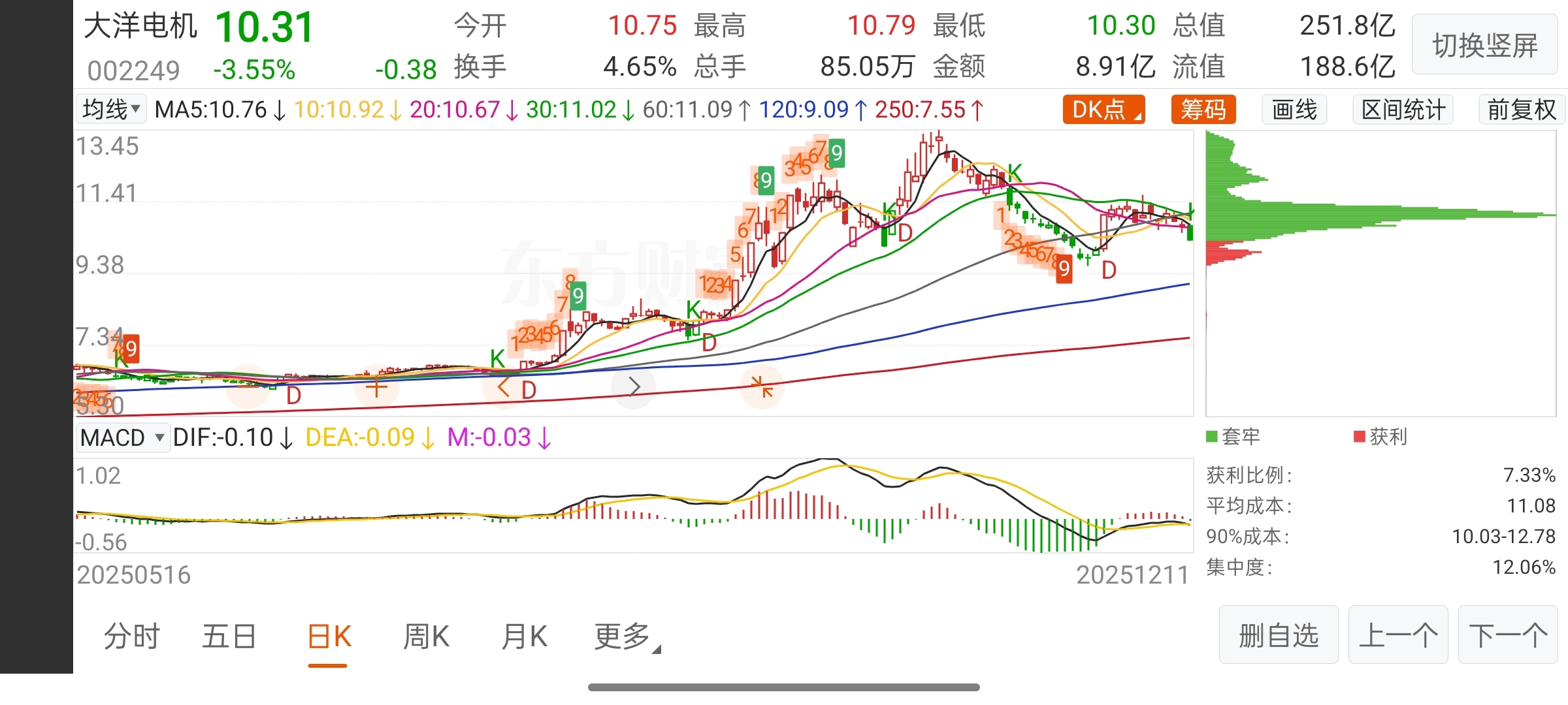 $大洋电机(SZ002249)$ 又出k点,什么时候是个尽头?